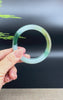 * DETAILS--- Genuine Burmese Jadeite Jade Bangle Bracelet. This bangle is made with very high-quality genuine Burmese Jadeite jade. The jade texture is fine and smooth with oil green and a little bit icy blue flower and a little bit sajin(yellow/red flecks). The half round shape offers both comfort and a perfect display of the jade’s natural beauty. It's a unique gift for you and your love.