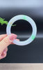* DETAILS--- Genuine Burmese White Jadeite Jade Bangle Bracelet. This stunning bangle is made from fine Burmese jadeite, featuring blending icy green base, kissed by some sajin(yellow flecks), and together with a little bit lavender hue. The traditional round silhouette showcases nature's artistry in smooth, luxurious curves. More than jewelry, it carries centuries of eastern wisdom—a wearable heirloom for the discerning collector.