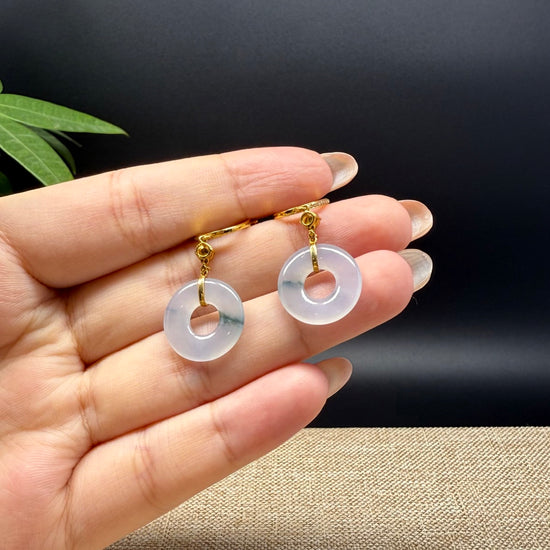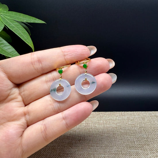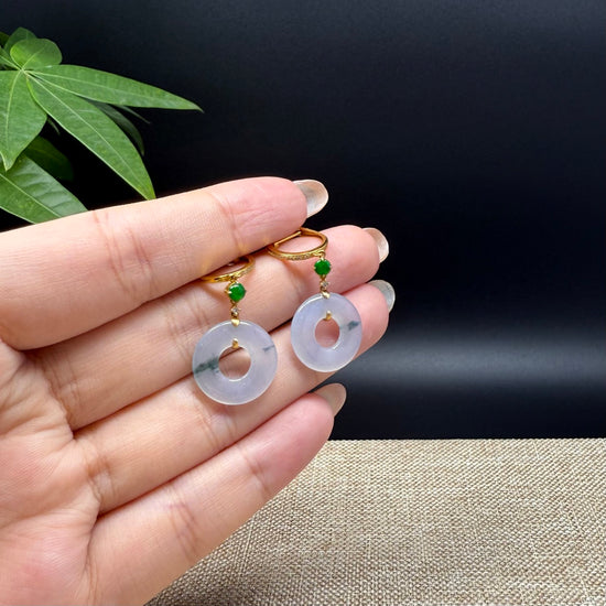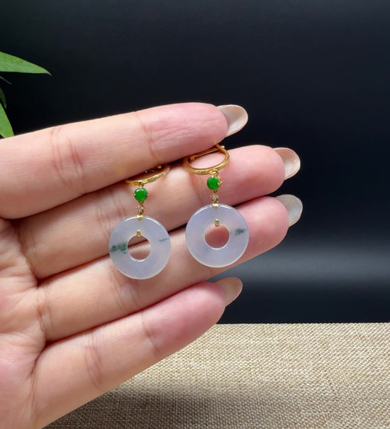 * DESIGN CONCEPT--- 18k Yellow Gold & Genuine Burmese Jadeite Jade Earrings With Imperial jade. These earrings are made with high-quality genuine icy green  jadeite jade, The jadeite piece looks so clean and smooth without cracks or any dirty spots. And it's translucent like there is water inside. It means prosperity, good luck, and safety. The pendant looks so lovely and exquisite. It's a perfect gift for yourself and your love.