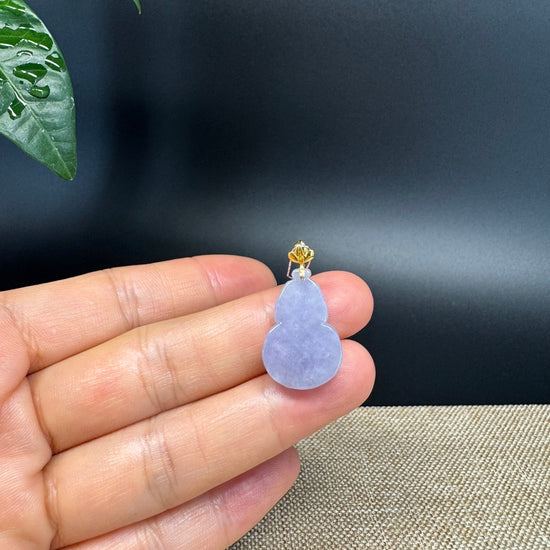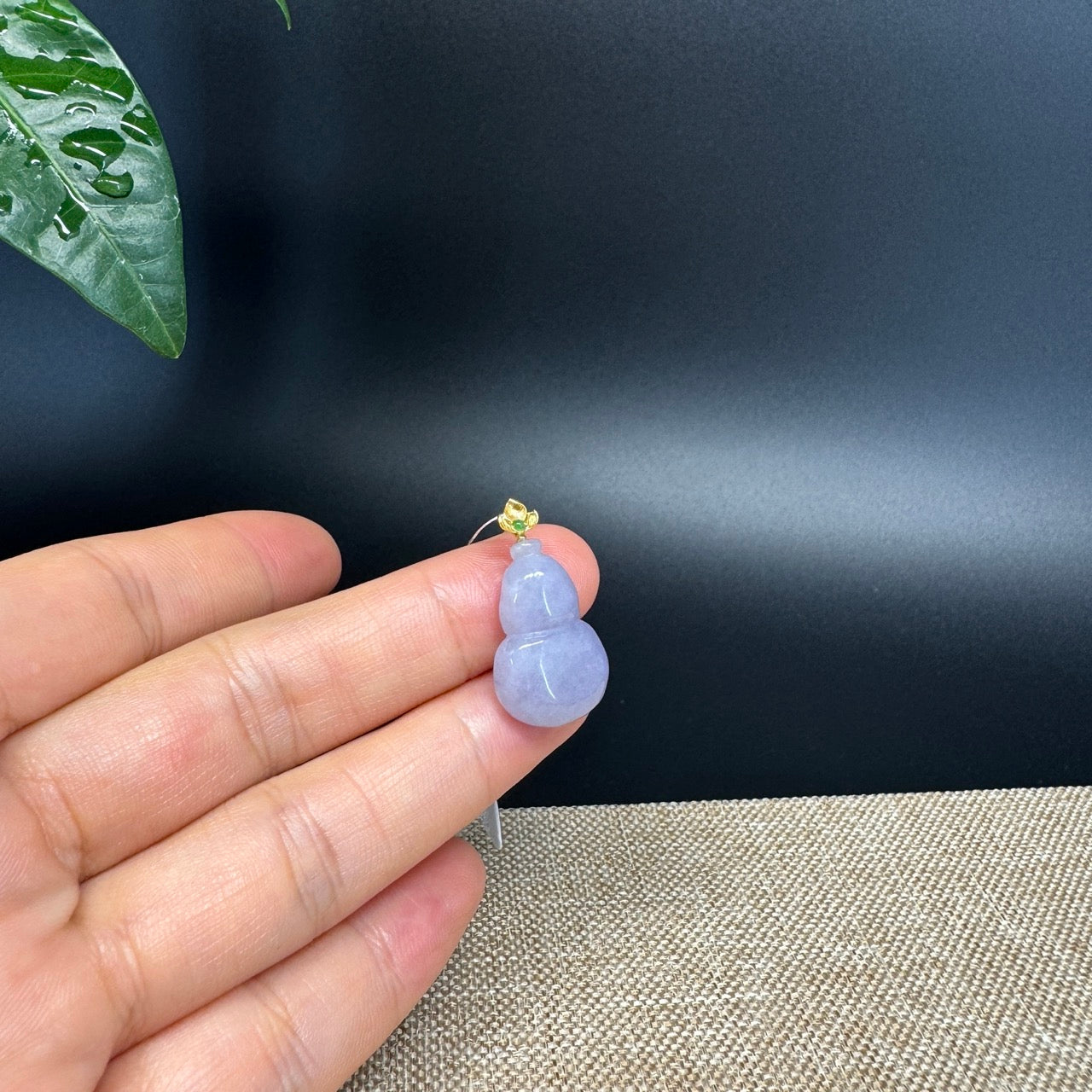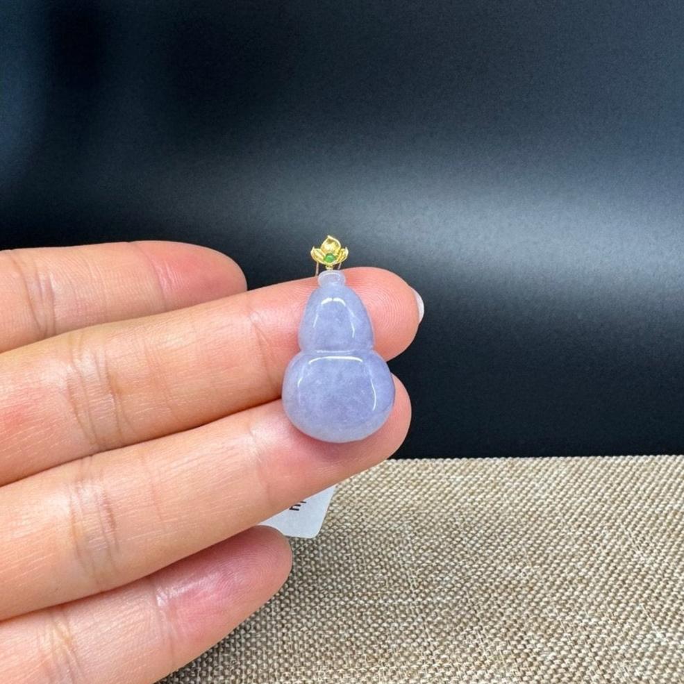 *Design concept-- Genuine lavender Jade fashioned into a section of Lucky HuLu as accent. This pendant is made with high-quality Burmese lavender jadeite jade. The jade texture is smooth with 18k white gold imperial jade butterfly bail. Looks so cute! The pendant depicts a Magic HuLu to complete the picture. To represent wealth, health and good fortune. It's a special gift for yourself or your love.