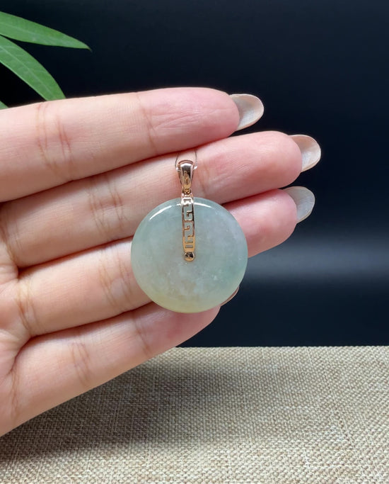 *Design Concept--- The simple shape of a circle represents things such as happiness, wholeness, and prosperity. This necklace is made with very high-quality genuine Burmese Icy Yellow green jadeite jade. and made with 18K rose solid gold. The texture is very smooth. Looks so graceful. Gifting one of these is like wishing the best of luck to your family or loved ones. It's a meaningful gift.