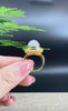 Design concept --- Perfect one of a kind piece for lovers of lavender jadeite jade. Incredible color and luster on this particular gem with amazing texture and translucency. The shape of the ring is oval.18k yellow gold and diamonds inlay.Along with two green imperial jade cabochon stones that match perfectly. Set in premium 18k yellow gold to bring out the value of the whole piece. Making it a special gift for yourself or your love.