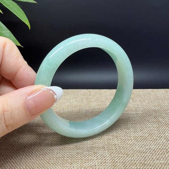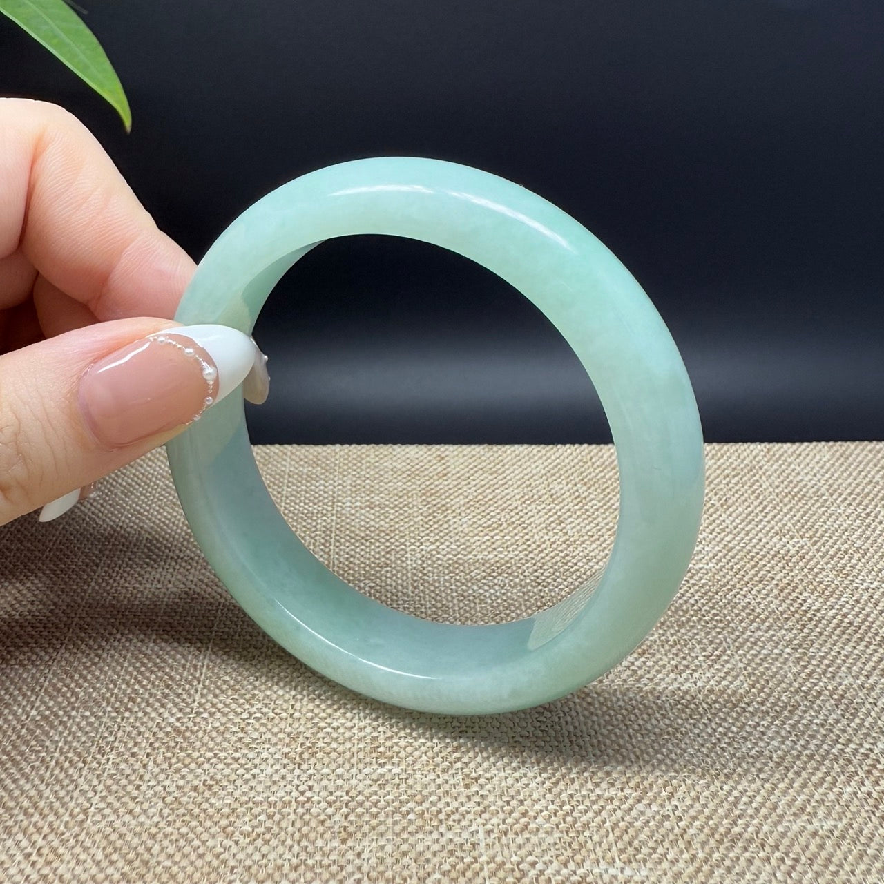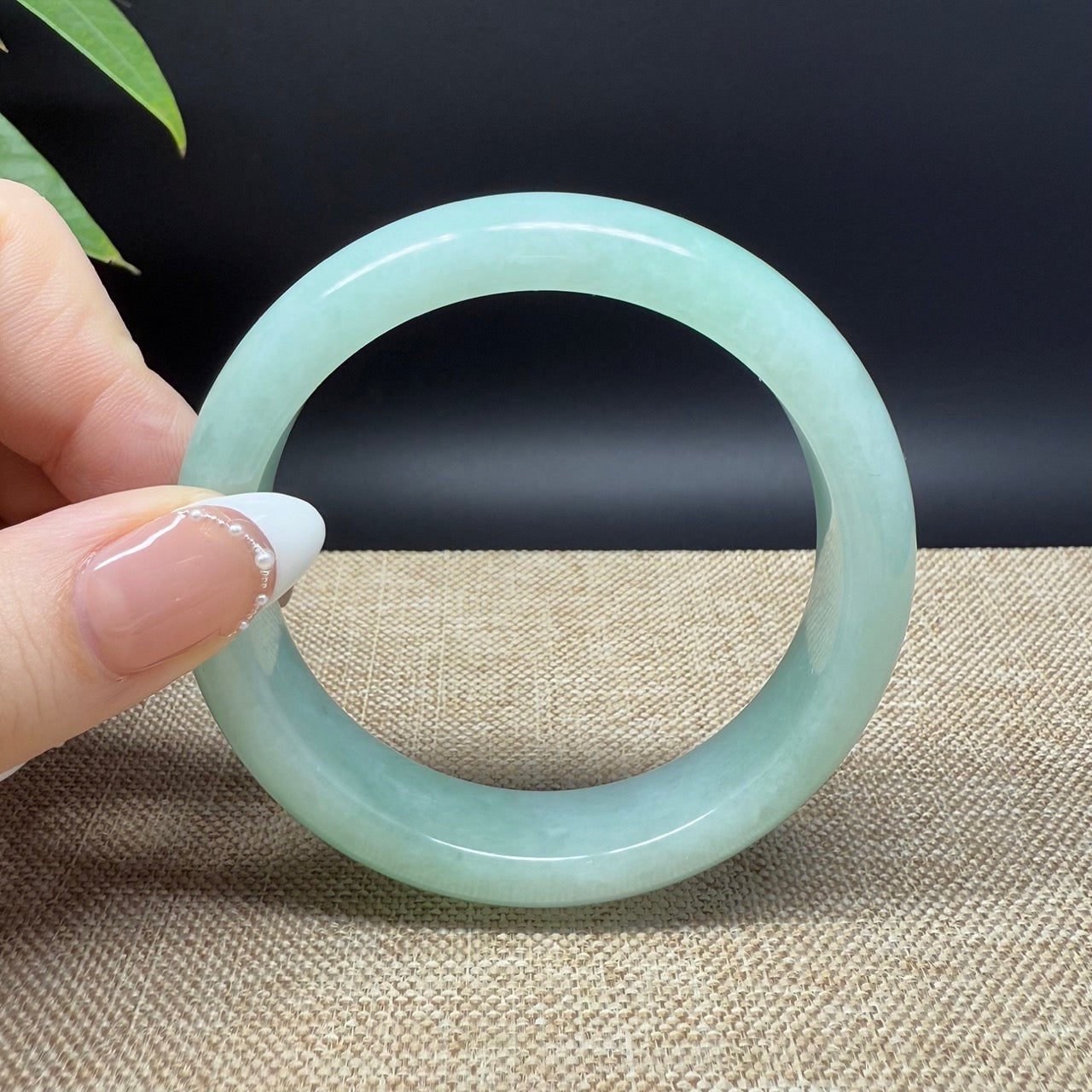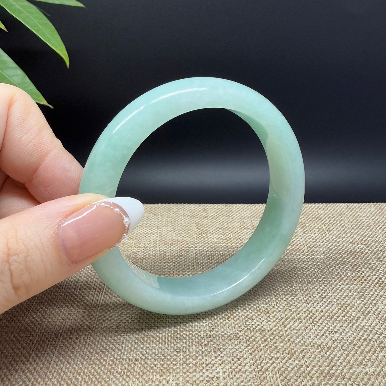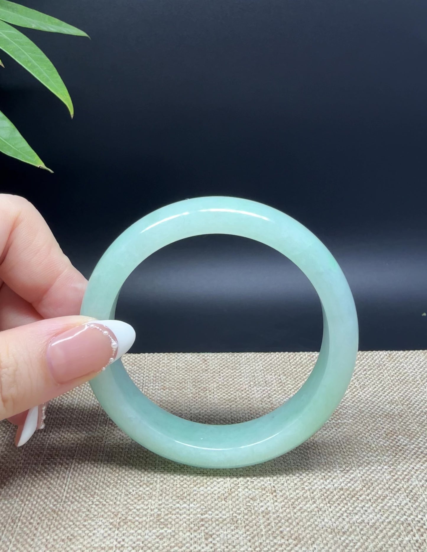 * DETAILS--- Genuine Burmese Jadeite Jade Bangle Bracelet. This bangle is made with very high-quality genuine Burmese Jadeite jade. The jade texture is fine and smooth with apple green color. The half round shape offers both comfort and a perfect display of the jade’s natural beauty. It's a unique gift for you and your love.