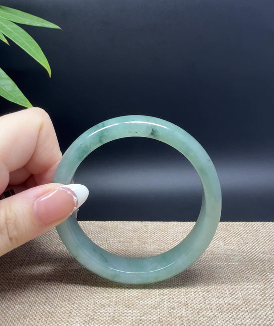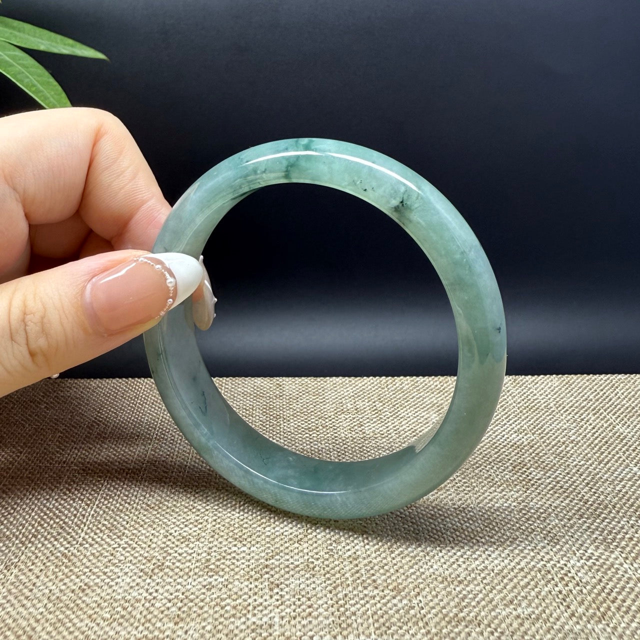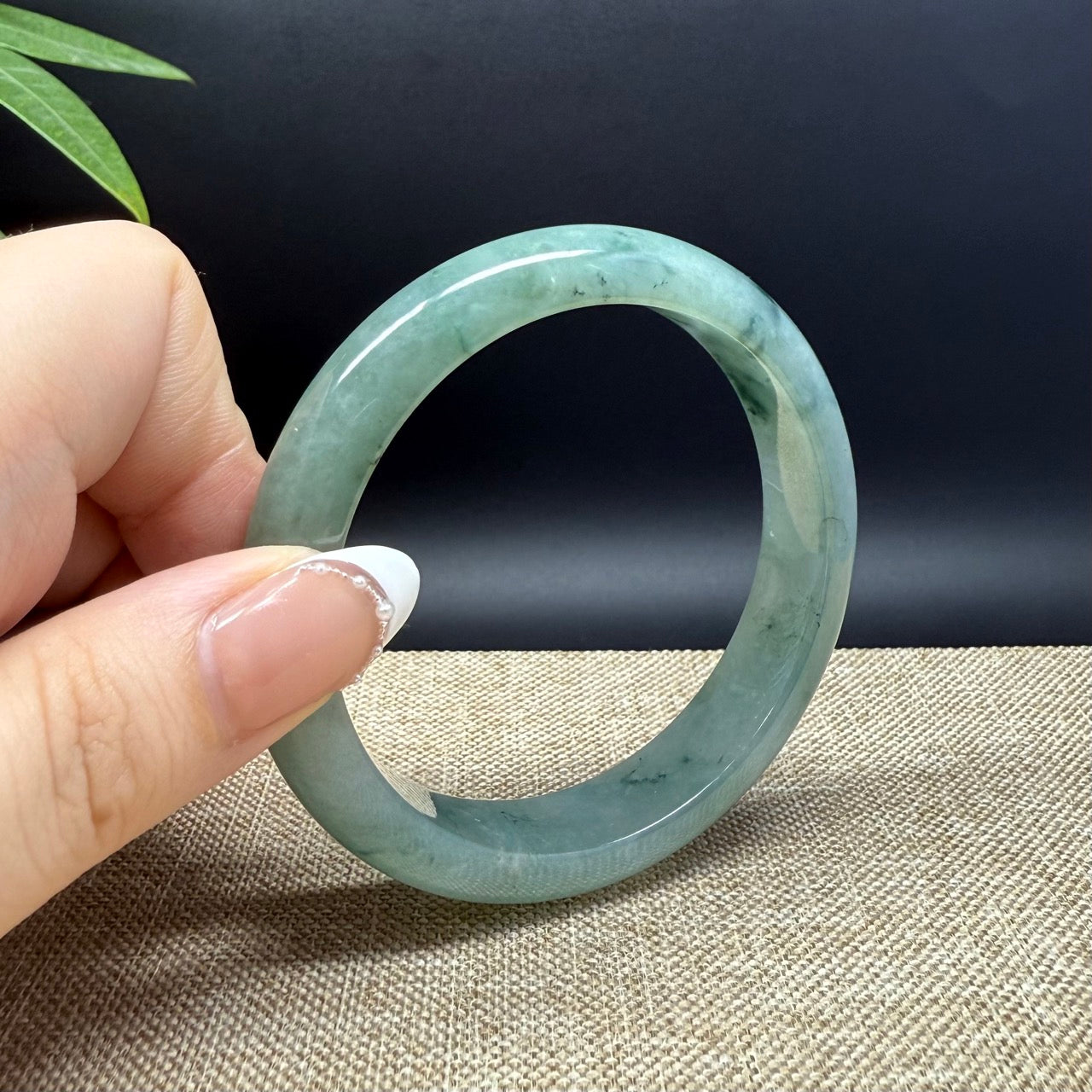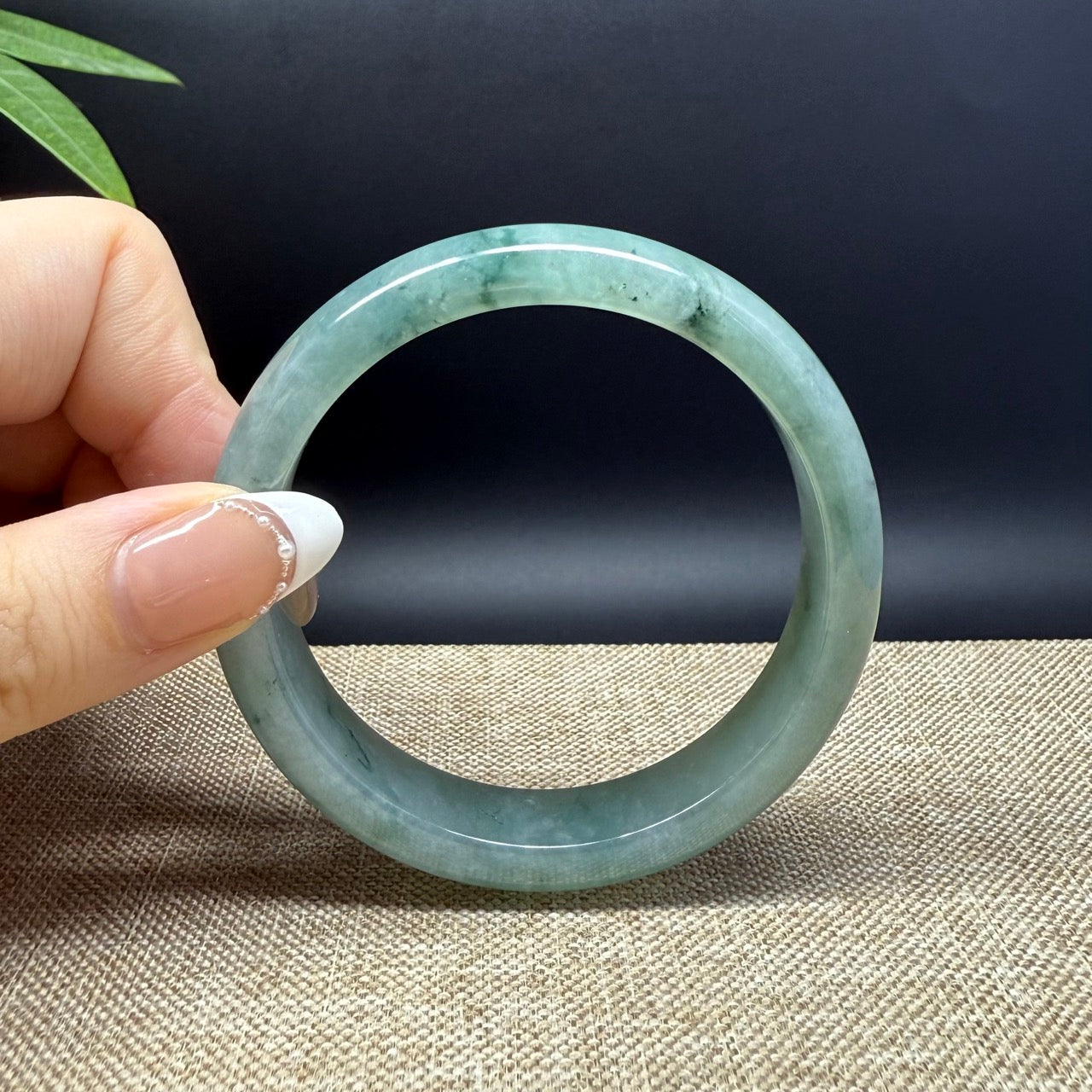 * DETAILS--- Genuine Burmese Jadeite Jade Bangle Bracelet. This bangle is made with very high quality genuine Burmese Ice Oil Green Jadeite jade, The jade texture is so transparent with oil green color inside. The oil green color and transparency ice texture, truly a mesmerizing combination. The Classic half-round style bracelet. it looks completely luxurious and perfect. It's a high-end gift for yourself or your love.