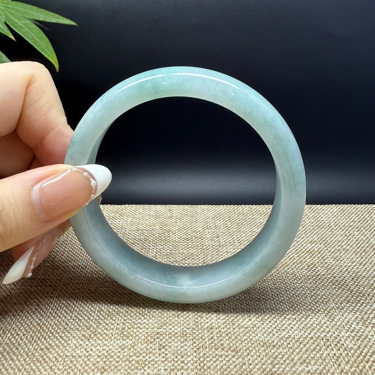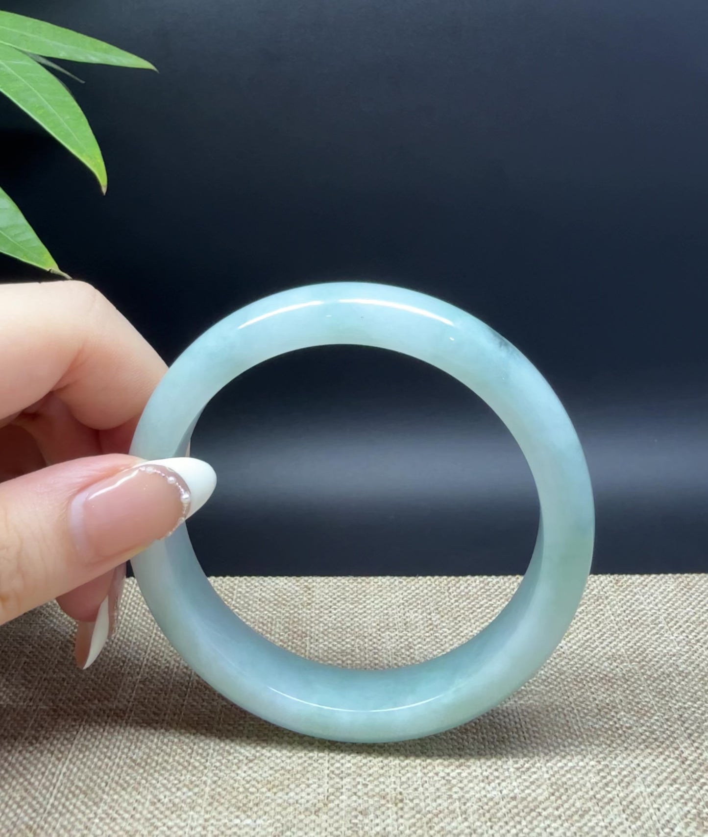 * DETAILS--- Genuine Burmese Jadeite Jade Bangle Bracelet. This bangle is made with very high-quality genuine Burmese Jadeite jade. The jade texture is fine and smooth with oil green color. The half round shape offers both comfort and a perfect display of the jade’s natural beauty. It's a unique gift for you and your love.