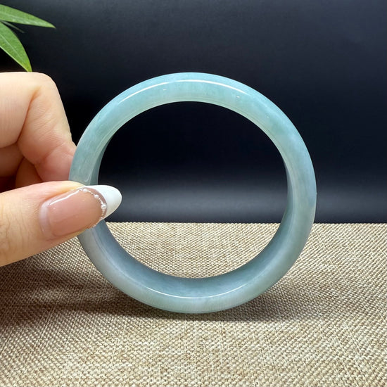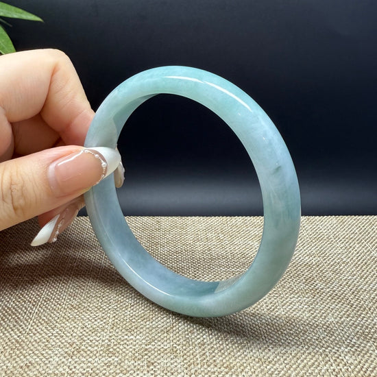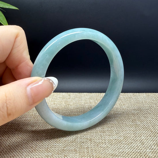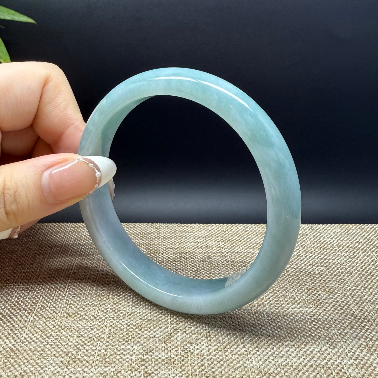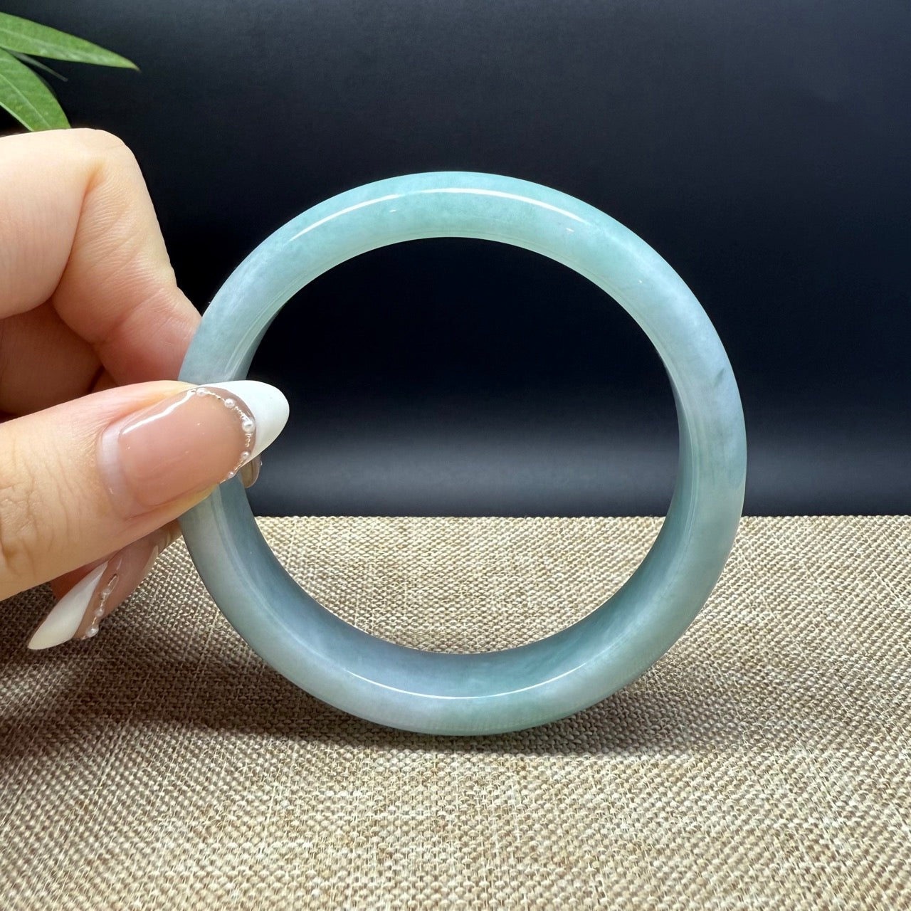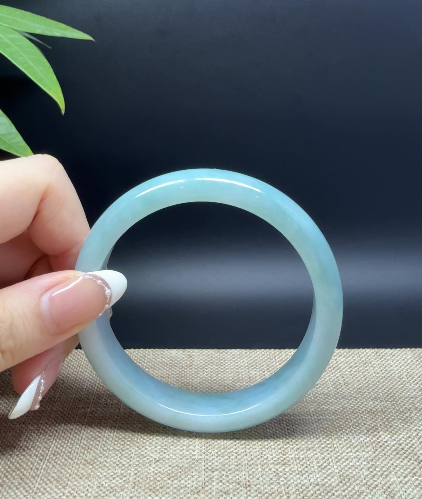 * DETAILS--- Genuine Burmese Jadeite Jade Bangle Bracelet. This bangle is made with very high-quality genuine Burmese Jadeite jade. The jade texture is fine and smooth with light ocean blue color. The half round shape offers both comfort and a perfect display of the jade’s natural beauty. It's a unique gift for you and your love.