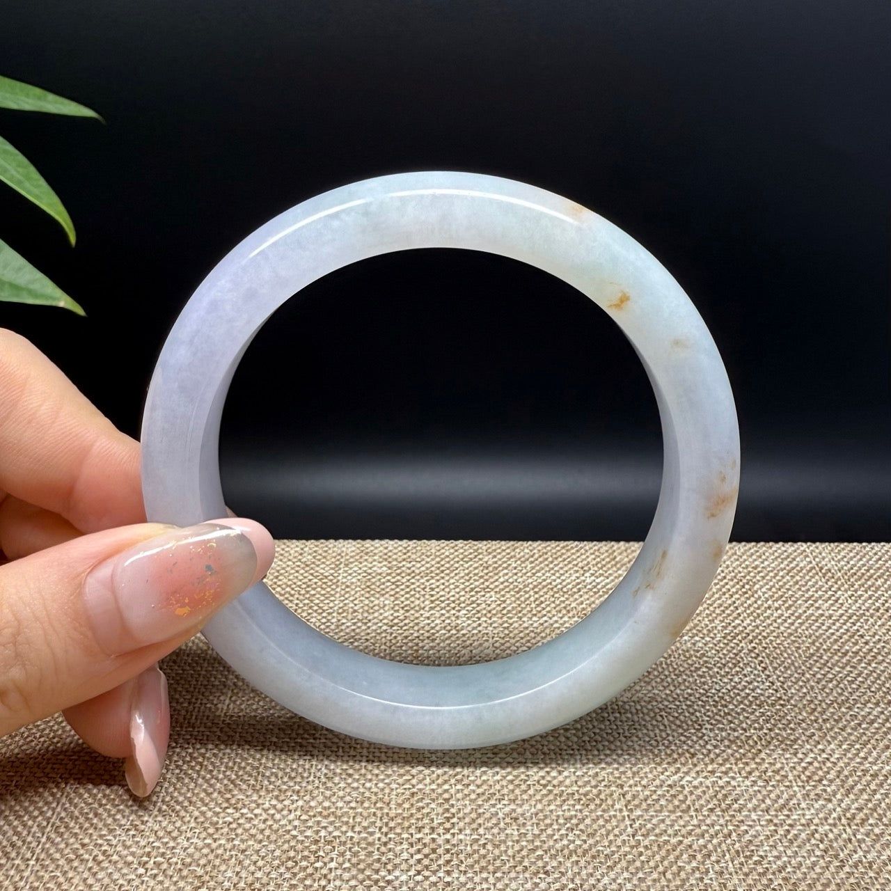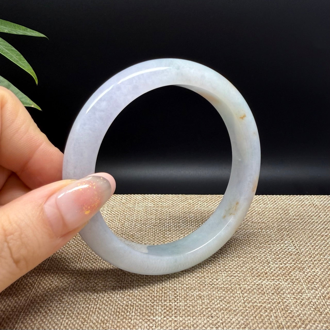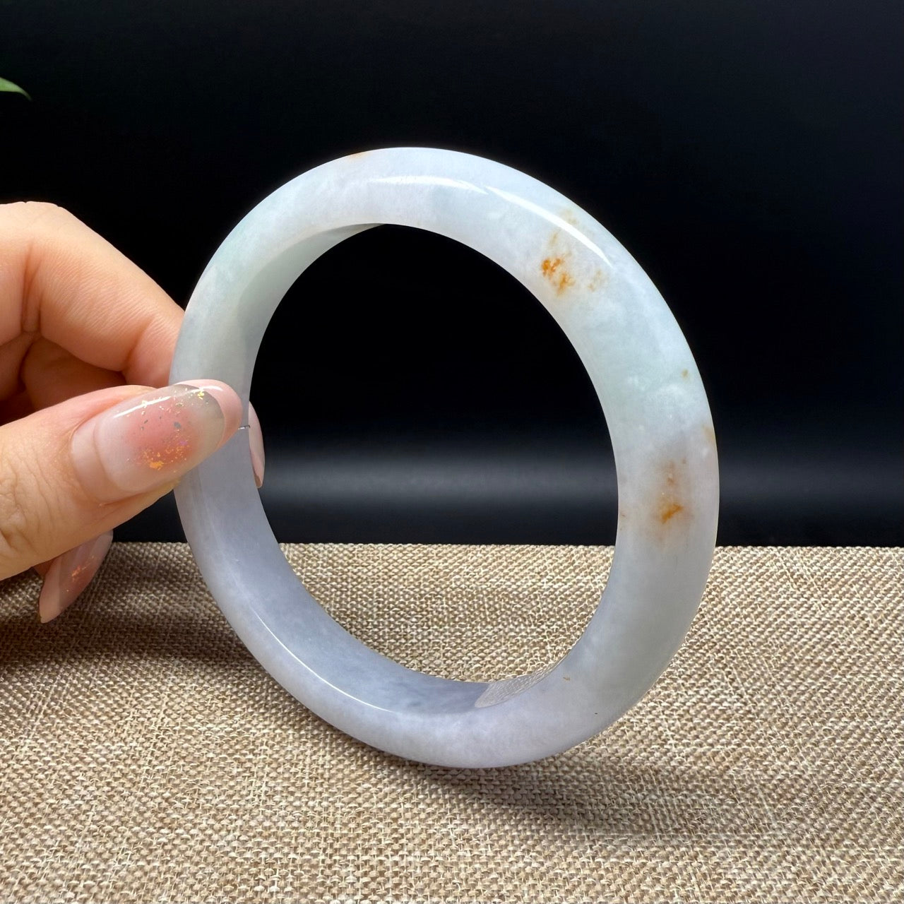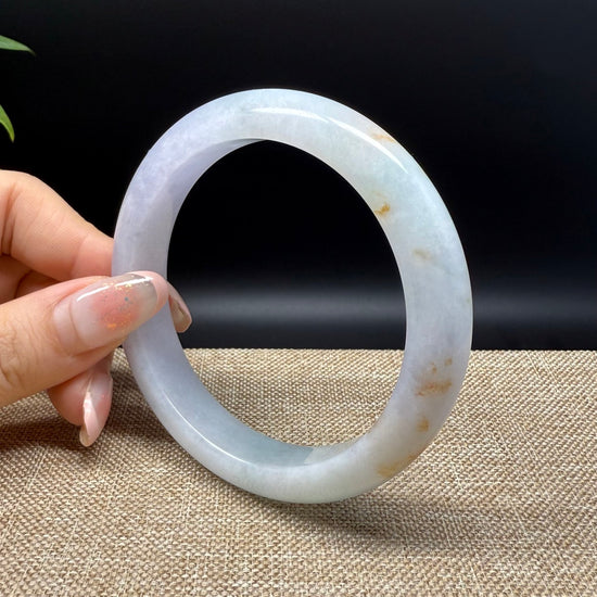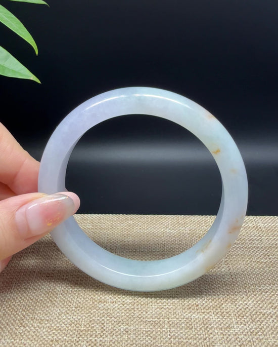 * DETAILS--- Genuine Burmese Jadeite Jade Bangle Bracelet. This bangle is made with very high-quality genuine Burmese Jadeite jade. The jade texture is fine and smooth with white-lavender base color and sajin(yellow flecks). The half round shape offers both comfort and a perfect display of the jade’s natural beauty. It's a unique gift for you and your love.