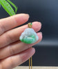 *INTRODUCTION---This exquisite necklace showcases vibrant green jadeite with a smooth texture, elegantly encased with 18K yellow bail. and the bail has a imperial jade accent. Expertly carved into a Happy Buddha, this pendant symbolizes joy, good luck, and prosperity, inviting happiness and positive energy to the wearer. A perfect blend of artistry and meaning, this piece is a delightful addition to any jewelry collection.