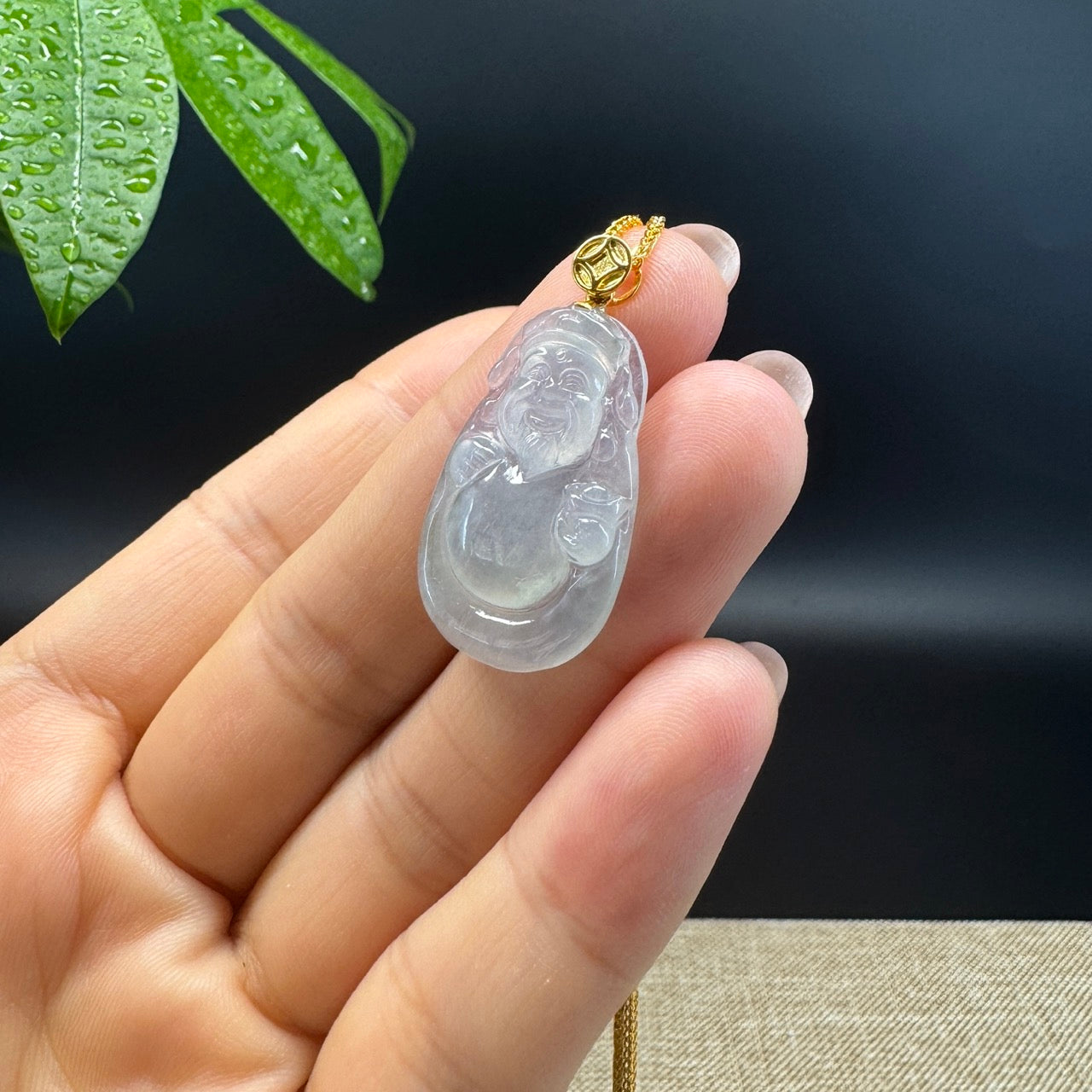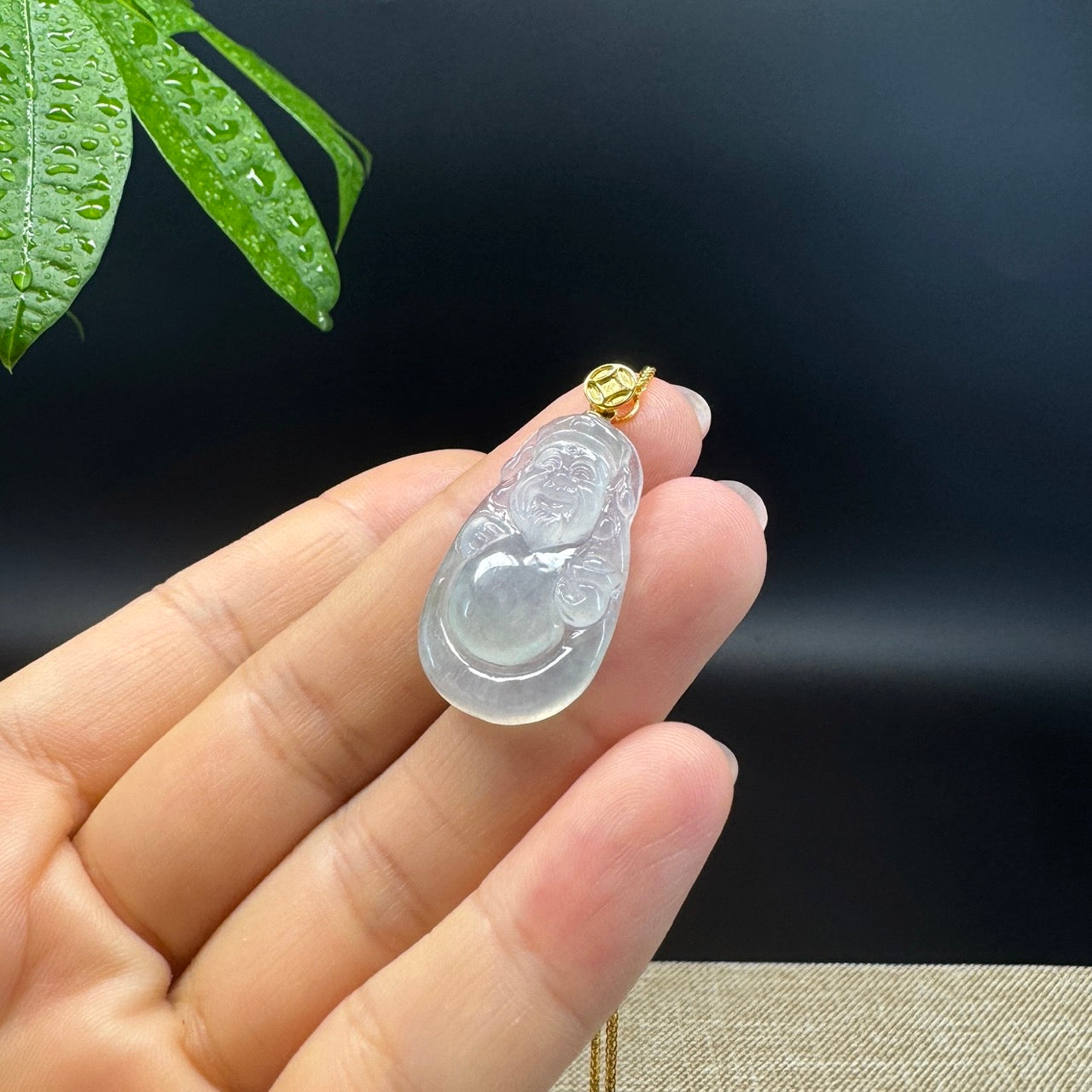 *INTRODUCTION---18k Yellow Gold & Genuine Icy Jadeite Jade Money Saint Pendant Necklace. The person who wears a Money Saint pendant around the neck attracts energy and wealth . They emit positive waves into the environment around them. The belief is all of the entire negativity is destroyed and a fighting spirit is generated within the person. The term money saint literally means enlightened one, a knower to be a mentor to save and protect you. Representing prosperity, good luck, and wealth. Perfect everyday style.