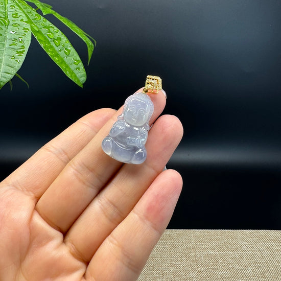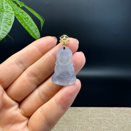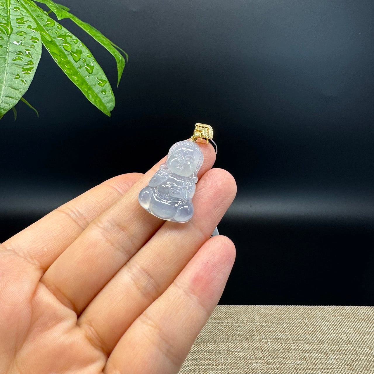 Burmese Icy lavender Jadeite Jade Happy Baby Buddha Pendant with Gold and Diamond Bail