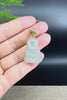*INTRODUCTION---This beautiful pendant is made from icy jadeite jade and features expert carving. Wearing a Happy Baby Buddha pendant is said to attract positive energy and uplift your surroundings. It symbolizes the release of negativity and encourages resilience. The term "Buddha" means "enlightened one," representing guidance and protection. This pendant embodies prosperity and good fortune, making it a perfect accessory for everyday wear.