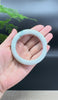 DETAILS--- Genuine Burmese Jadeite Jade Bangle Bracelet. This exquisite Burmese jadeite bangle features milky white throughout and some moss green flowers and sajin(just like flaming clouds) which create a mesmerizing interplay of color and light in a classic half-round design, making this piece a thoughtful, one-of-a-kind gift for yourself or someone truly special.