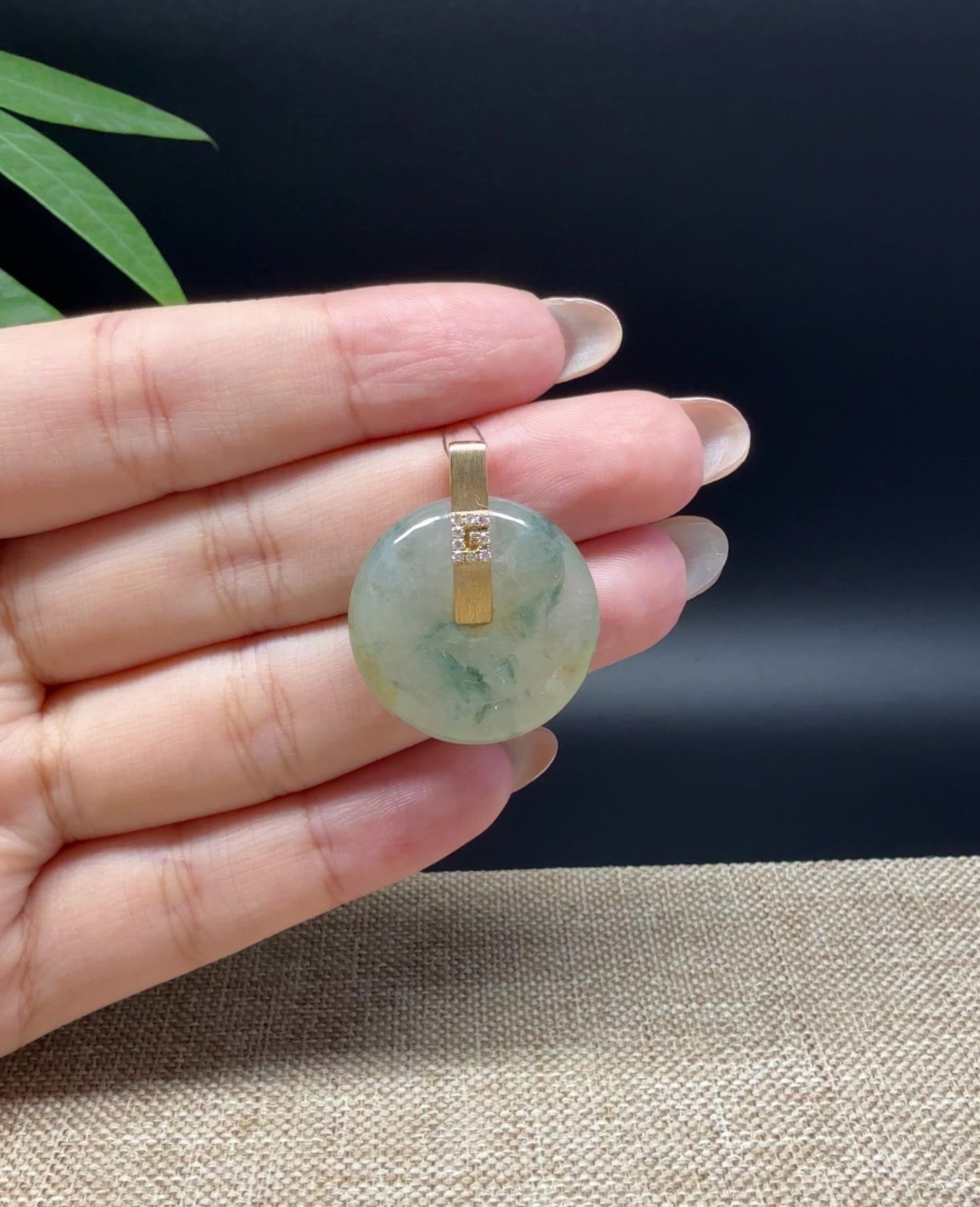 * Design Concept--- The simple shape of a circle represents things such as happiness, wholeness, and prosperity. This necklace is made with very high-quality genuine Burmese icy yellow Green jadeite jade. and made with 18K yellow gold bail with diamond. The texture is very smooth and ice. Looks so graceful. Gifting one of these is like wishing the best of luck to your family or loved ones. It's a meaningful gift.