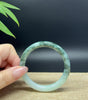 * DETAILS--- Genuine Burmese White Jadeite Jade Bangle Bracelet. This stunning bangle is made from fine Burmese jadeite, featuring soft white with intense oil green flowers. The traditional round silhouette showcases nature's artistry in smooth, luxurious curves. A meaningful gift — perfect for yourself or someone truly special.