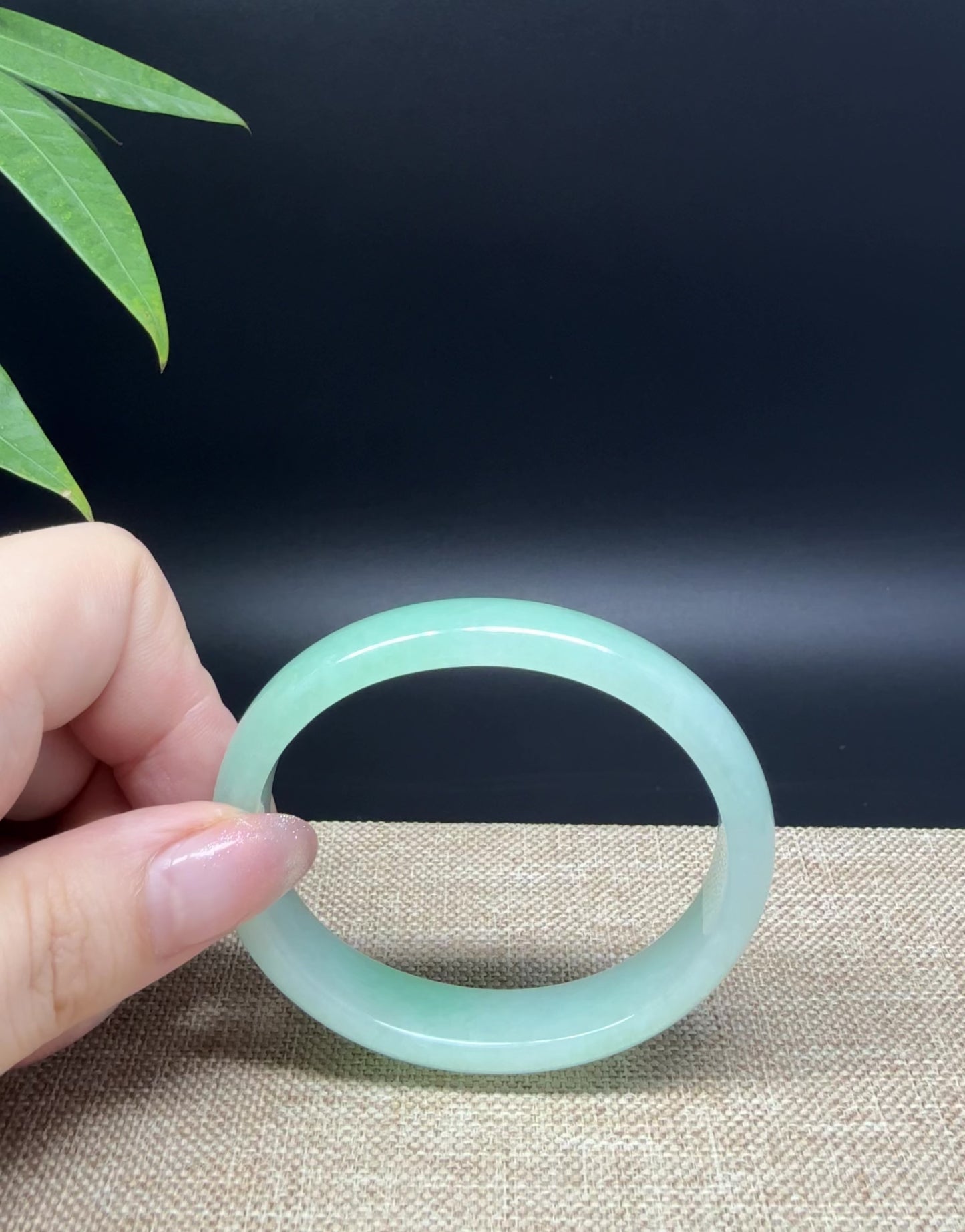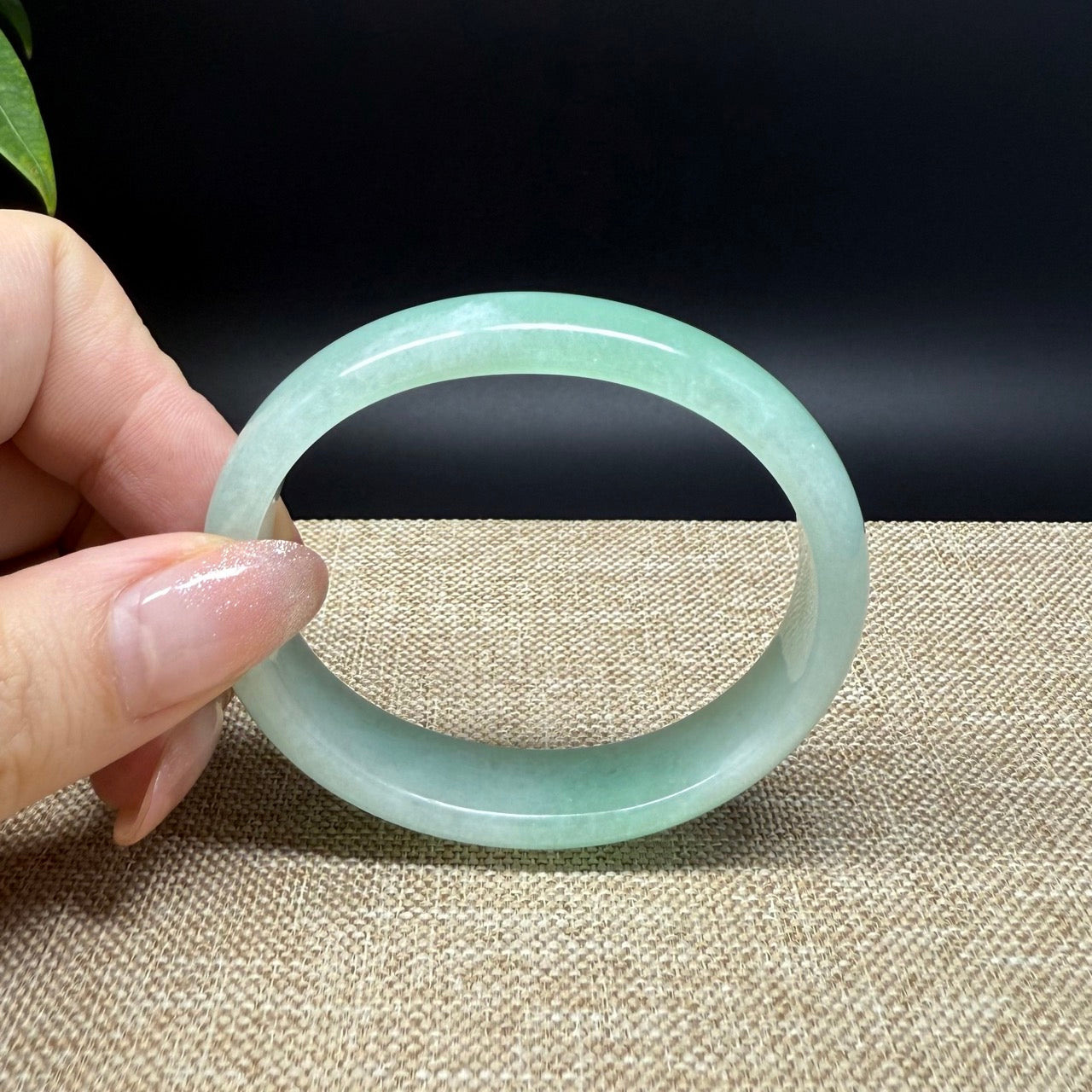 DETAILS--- Genuine Burmese Jadeite Jade Bangle Bracelet. This bangle is made with very high-quality genuine Burmese Jadeite jade. The jade texture is fine and smooth with mint green color. The oval half round shape is particularly suitable for people with petite hands, as its shape conforms to the natural curve of the wrist, fitting snugly to make the hands appear more slender and elegant. It's a unique gift for you and your love.