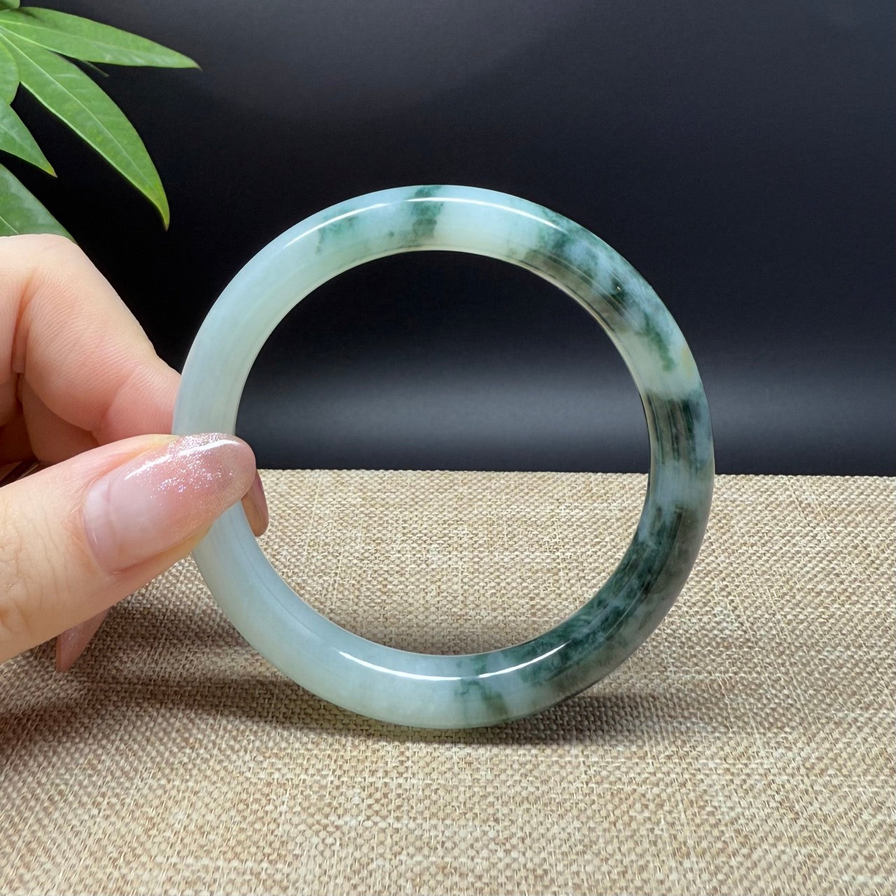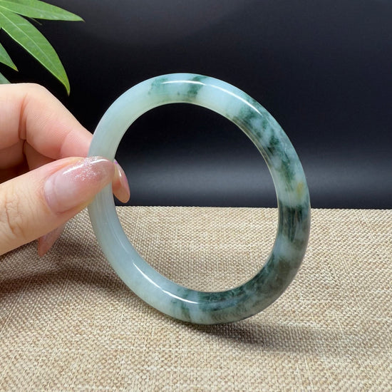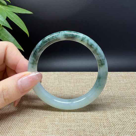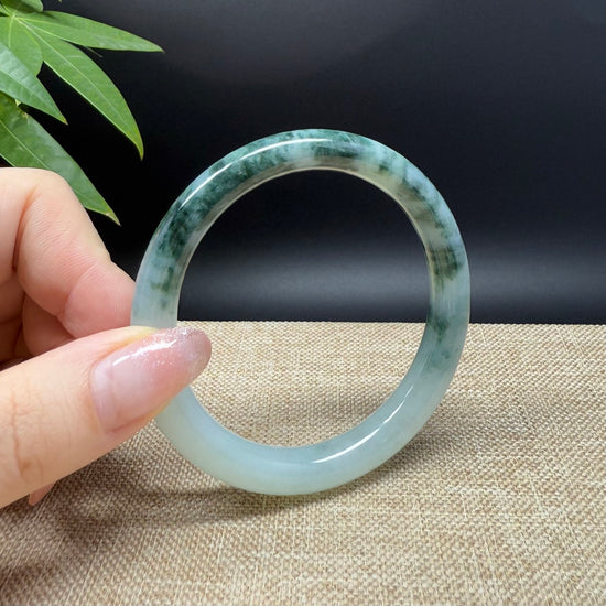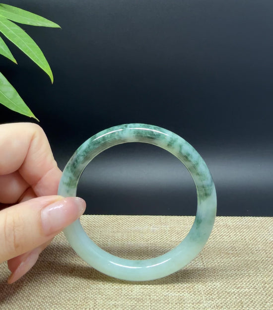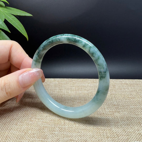 * DETAILS--- Genuine Burmese Jadeite Jade Bangle Bracelet. This bangle is made with very high-quality genuine Burmese Jadeite jade. The jade texture is fine and smooth with half soft white half intense oil green flowers.The traditional round silhouette showcases nature's artistry in smooth, luxurious curves. It's a unique gift for you and your love.