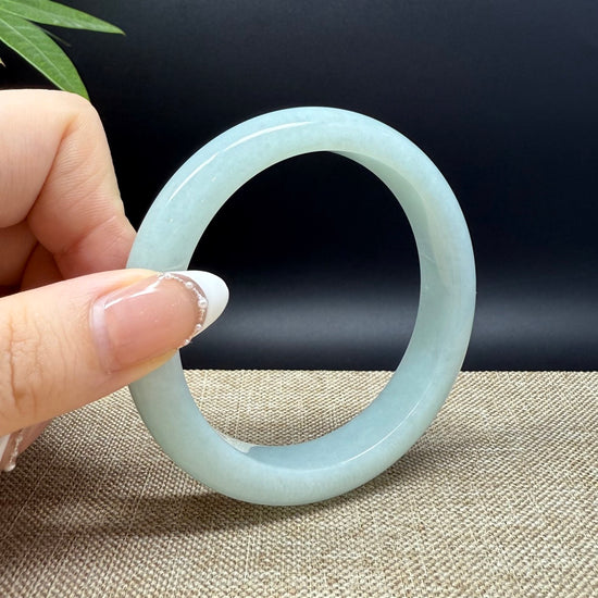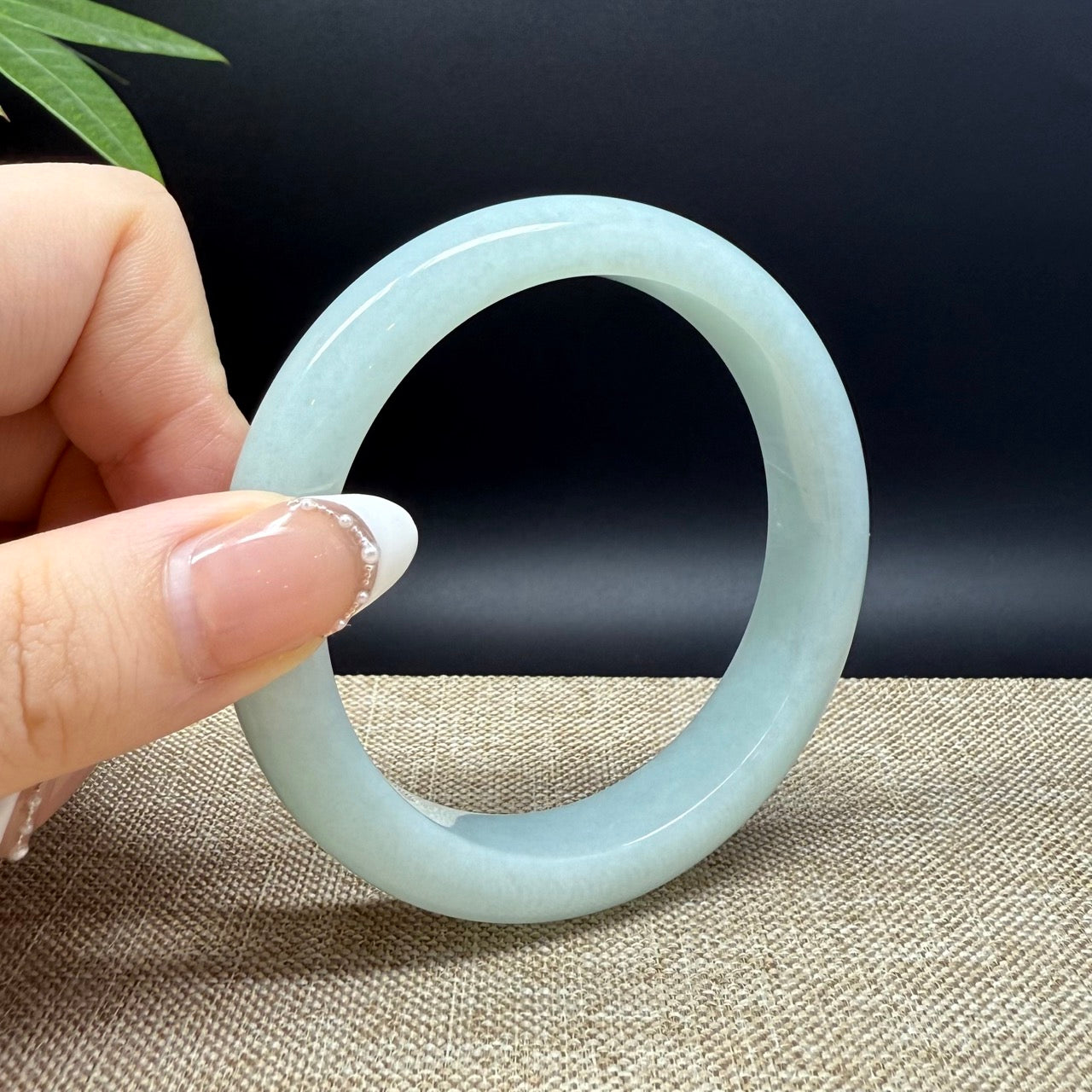 * DETAILS--- Genuine Burmese Jadeite Jade Bangle Bracelet. This bangle is made with very high-quality genuine Burmese Jadeite jade. The jade texture is fine and smooth with apple green color. Crafted in a classic half-round style, the bangle exudes timeless elegance. This piece is naturally unique, making it a one-of-kind gift choice.