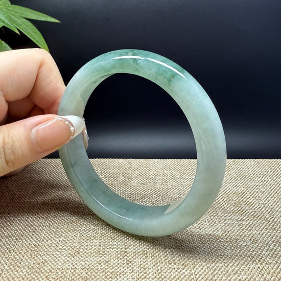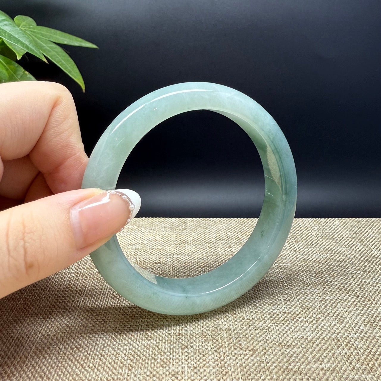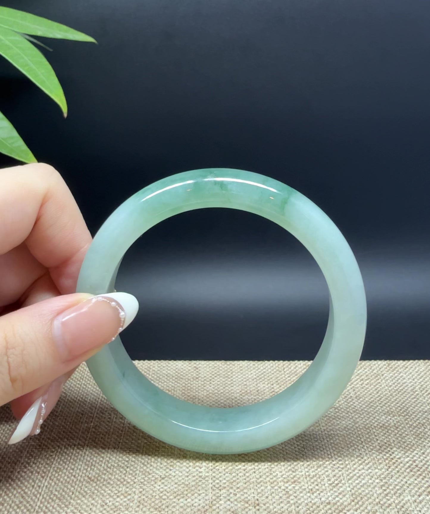 * DETAILS--- Genuine Burmese Jadeite Jade Bangle Bracelet. This bangle is made with very high-quality genuine Burmese Jadeite jade. The jade texture is fine and smooth with light oil green color. The half round shape offers both comfort and a perfect display of the jade’s natural beauty. It's a unique gift for you and your love.