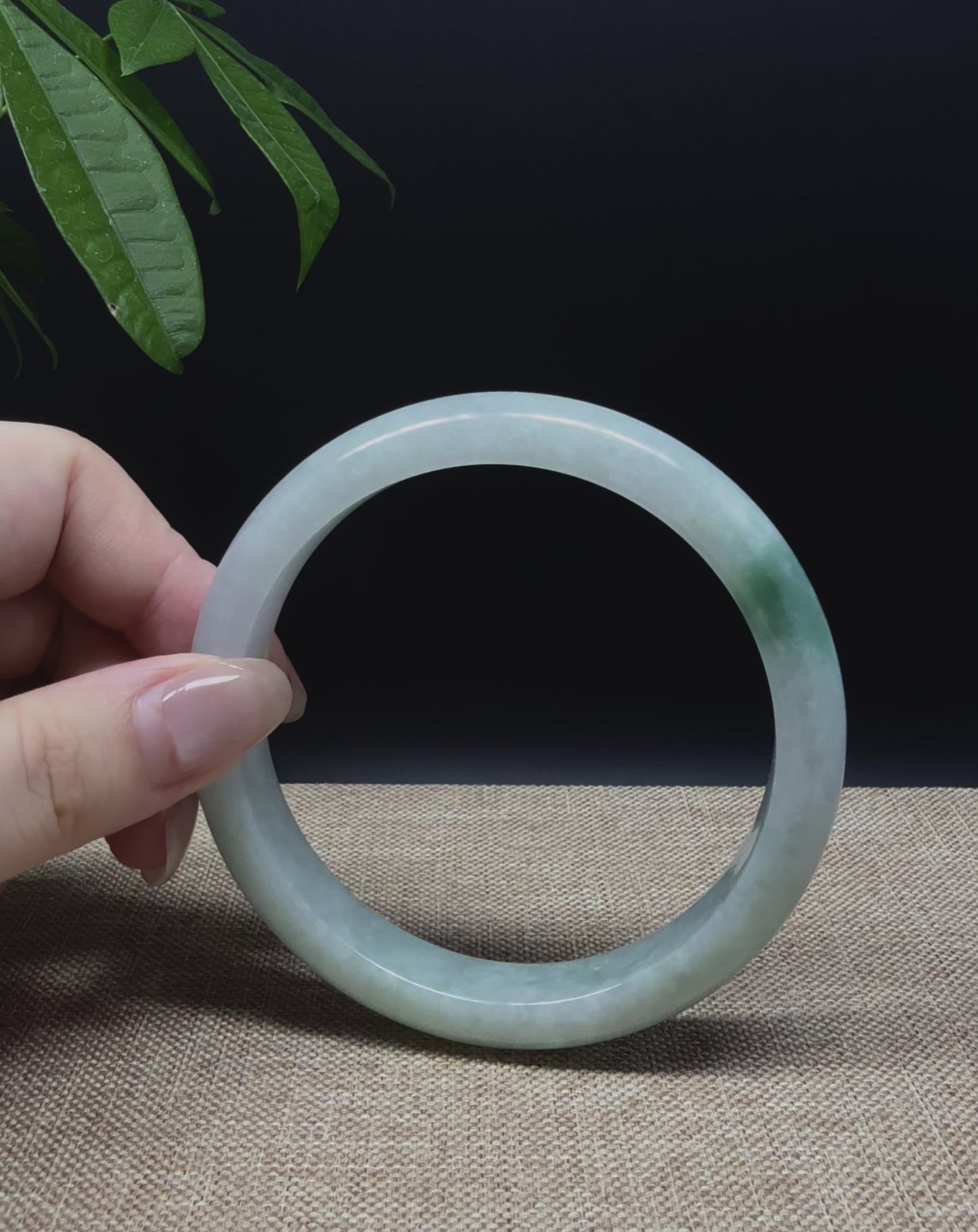 * DETAILS--- Genuine Burmese Jadeite Jade Bangle Bracelet. This bangle is made with very high-quality genuine Burmese Jadeite jade. The jade texture is fine and smooth with white-light green base color and a touch of oil green. Crafted in a classic half-round style, the bangle exudes timeless elegance. This piece is naturally unique, making it a one-of-kind gift choice.