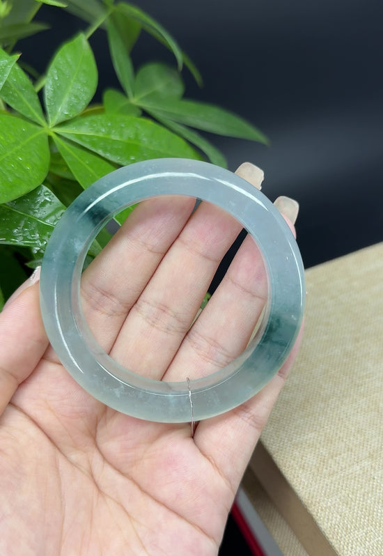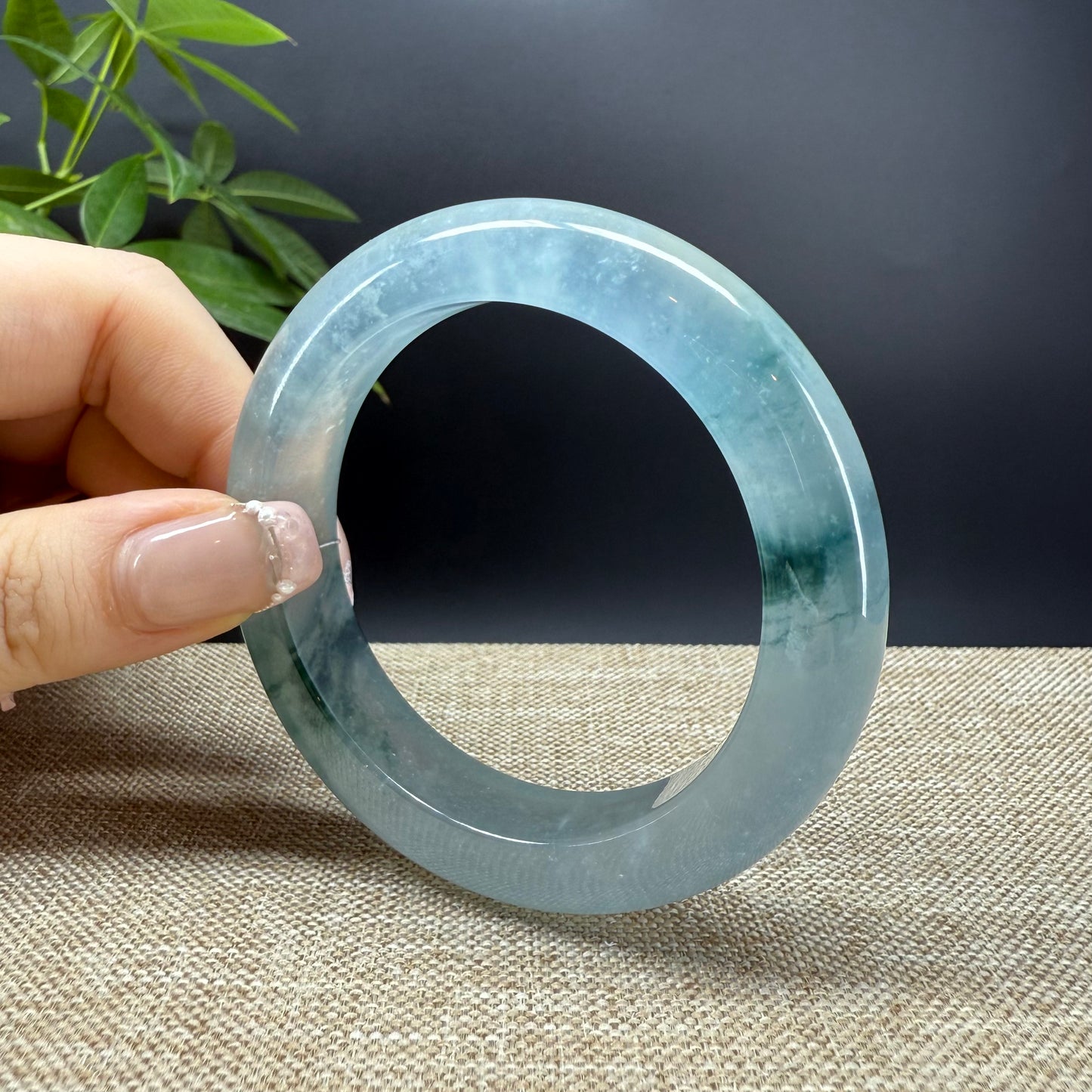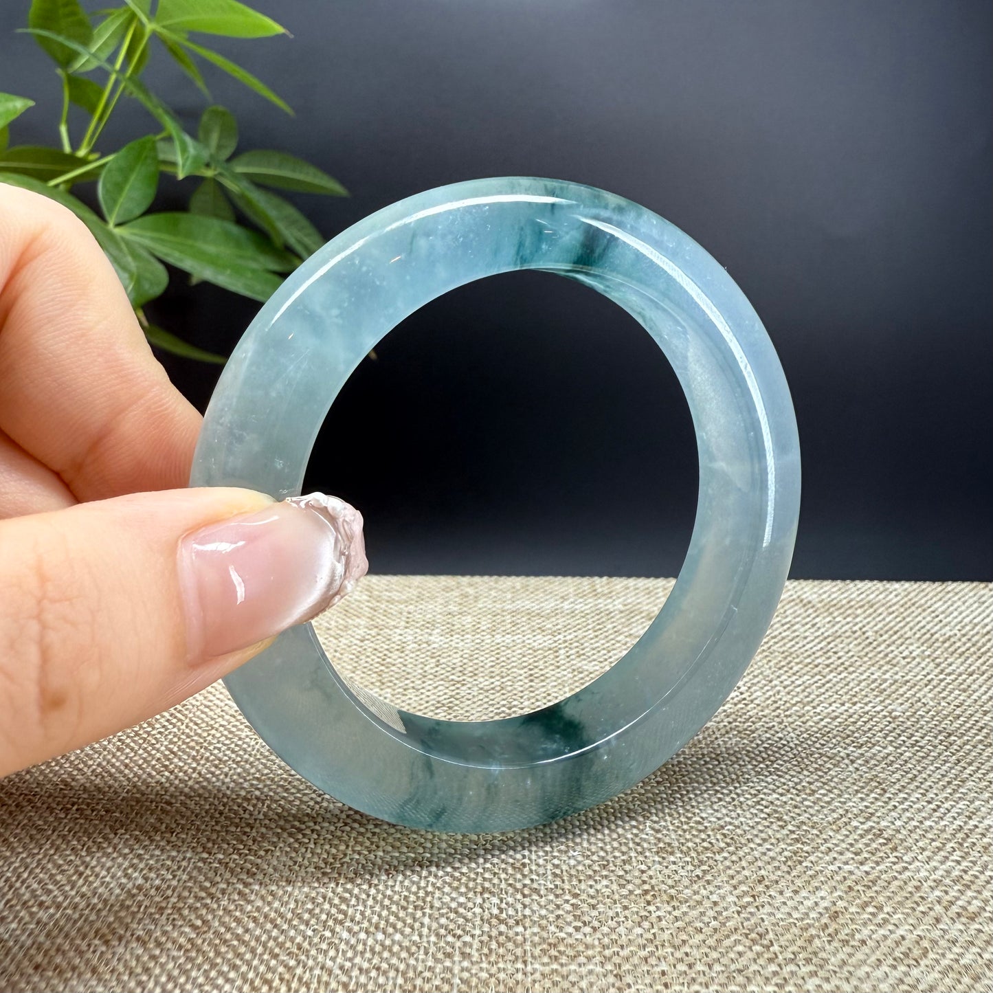 * DETAILS--- Genuine Burmese Jadeite Jade Bangle Bracelet. This beautiful bangle is made from high-quality, natural Burmese jadeite. It has a icy texture and a stunning mix of colors—half ocean blue half oil green. The half round shape makes it timeless and the unique colors make it truly stand out. It’s an elegant, eye-catching piece—perfect as a special gift for yourself or someone you love. It's a collectible item.
