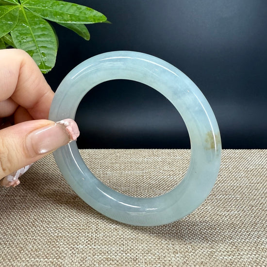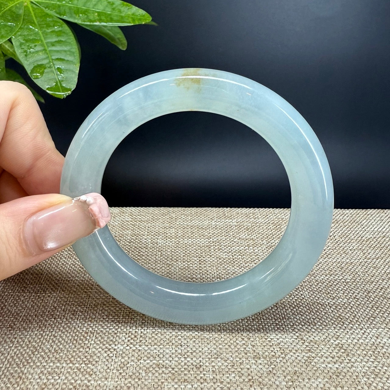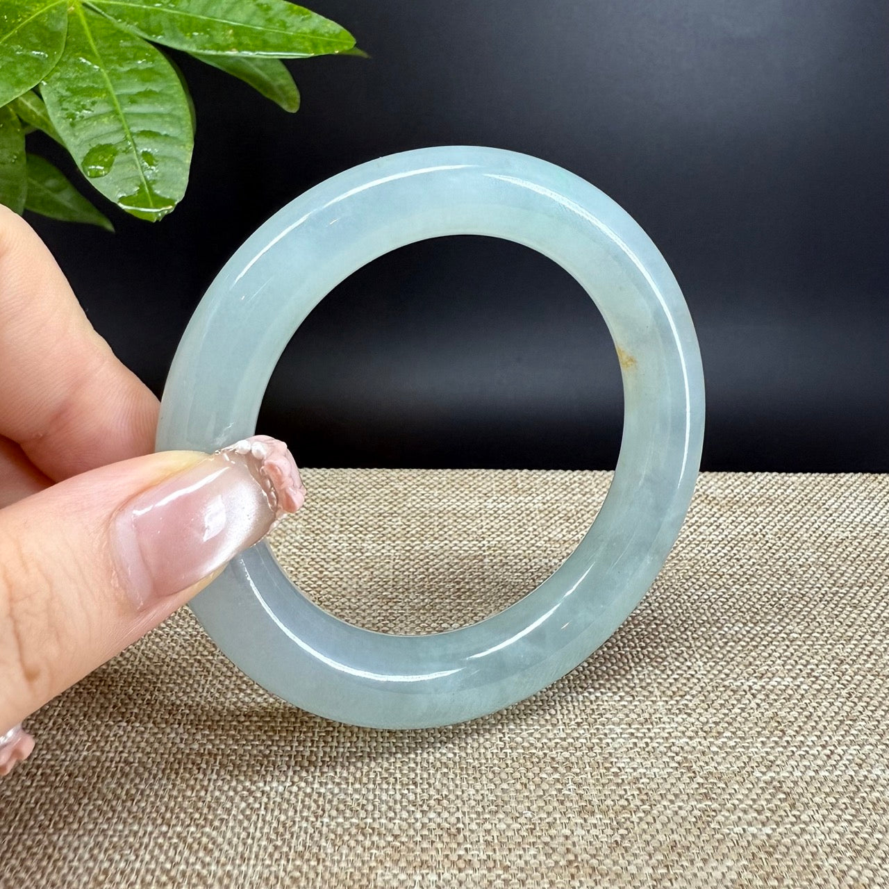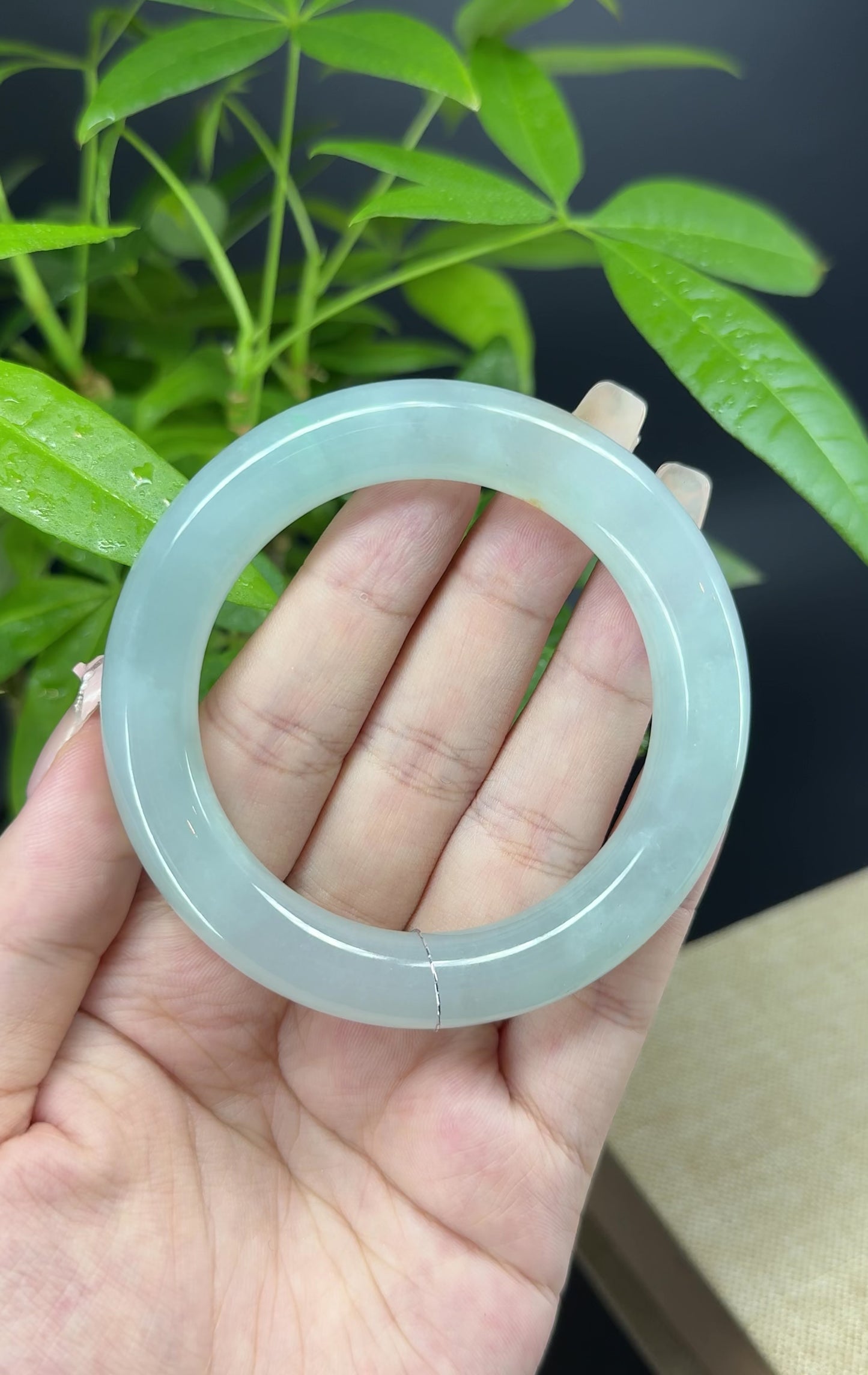DETAILS--- Genuine Burmese Jadeite Jade Bangle Bracelet. This jade displays a luminous, translucent texture with watery blue tone flowing throughout—captivating and full of style. The traditional round silhouette showcases nature's artistry in smooth, luxurious curves. More than just a piece of jewelry, this is a rare treasure—an elegant statement and a valuable investment in genuine Grade-A jadeite.