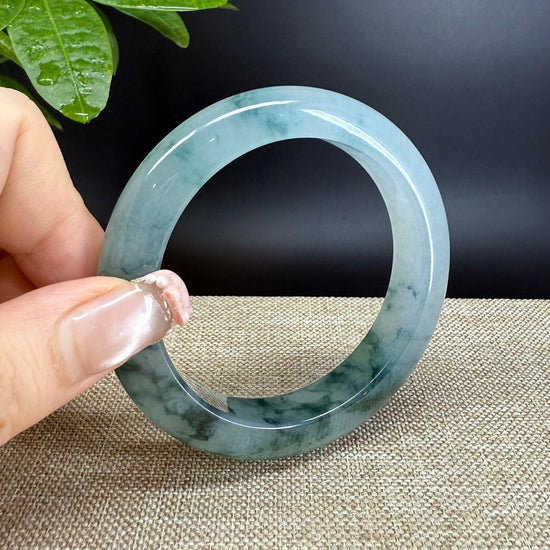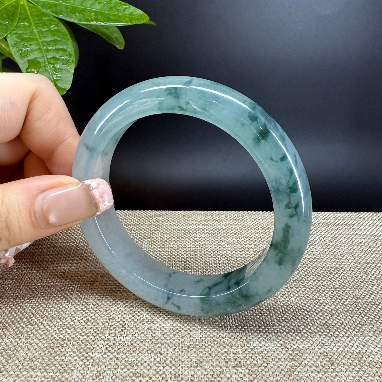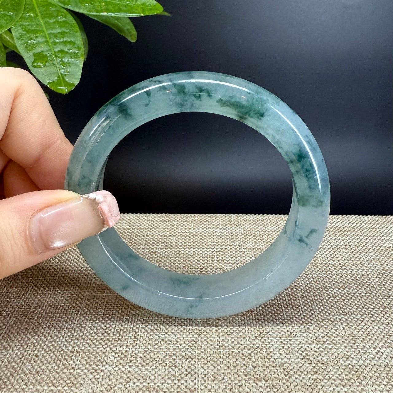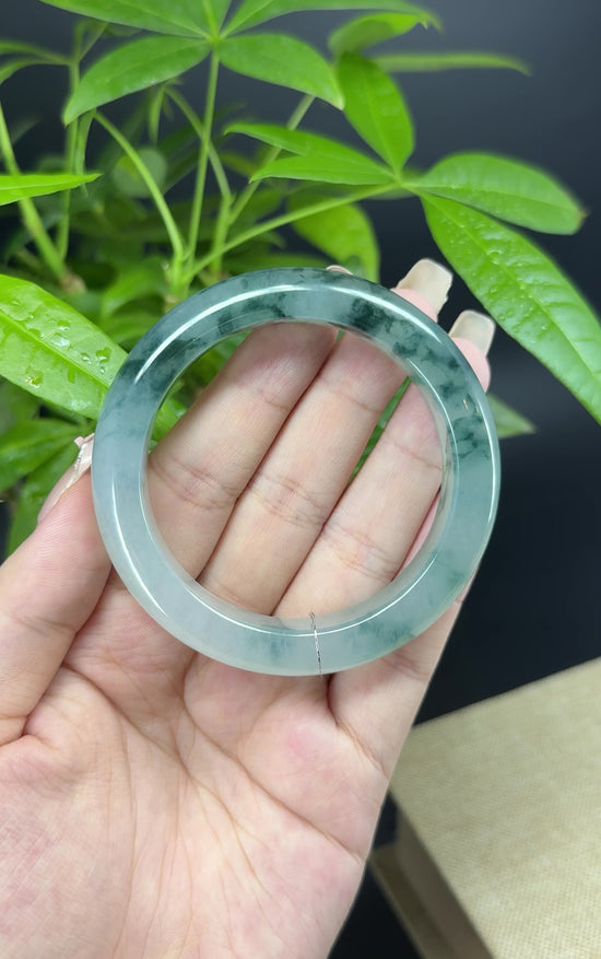DETAILS--- Genuine Burmese Jadeite Jade Bangle Bracelet. Like moonlight dancing on a forest pond, this genuine Burmese jadeite bangle mesmerizes with half intense dark green flowers half watery color. A half round masterpiece where nature's colorfulness meets luminous clarity - each glance reveals new dimensions in this wearable work of art.