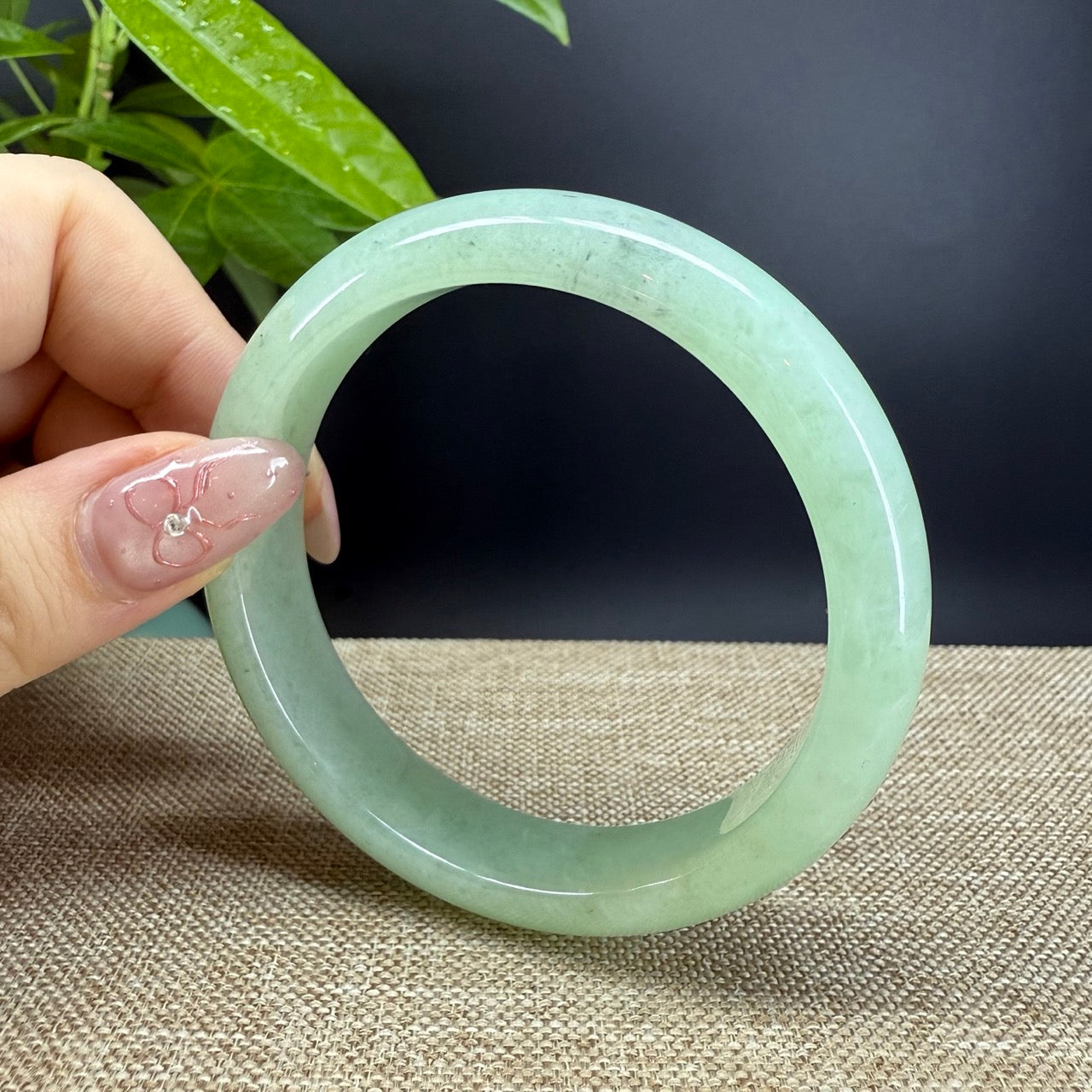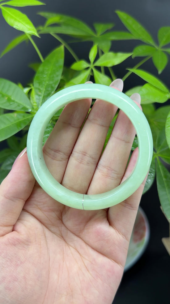 DETAILS--- Genuine Burmese Jadeite Jade Bangle Bracelet. This bangle is made with very high-quality genuine Burmese Jadeite jade. The jade texture is fine and smooth with grape green color. The half round shape offers both comfort and a perfect display of the jade’s natural beauty. It's a unique gift for you and your love.
