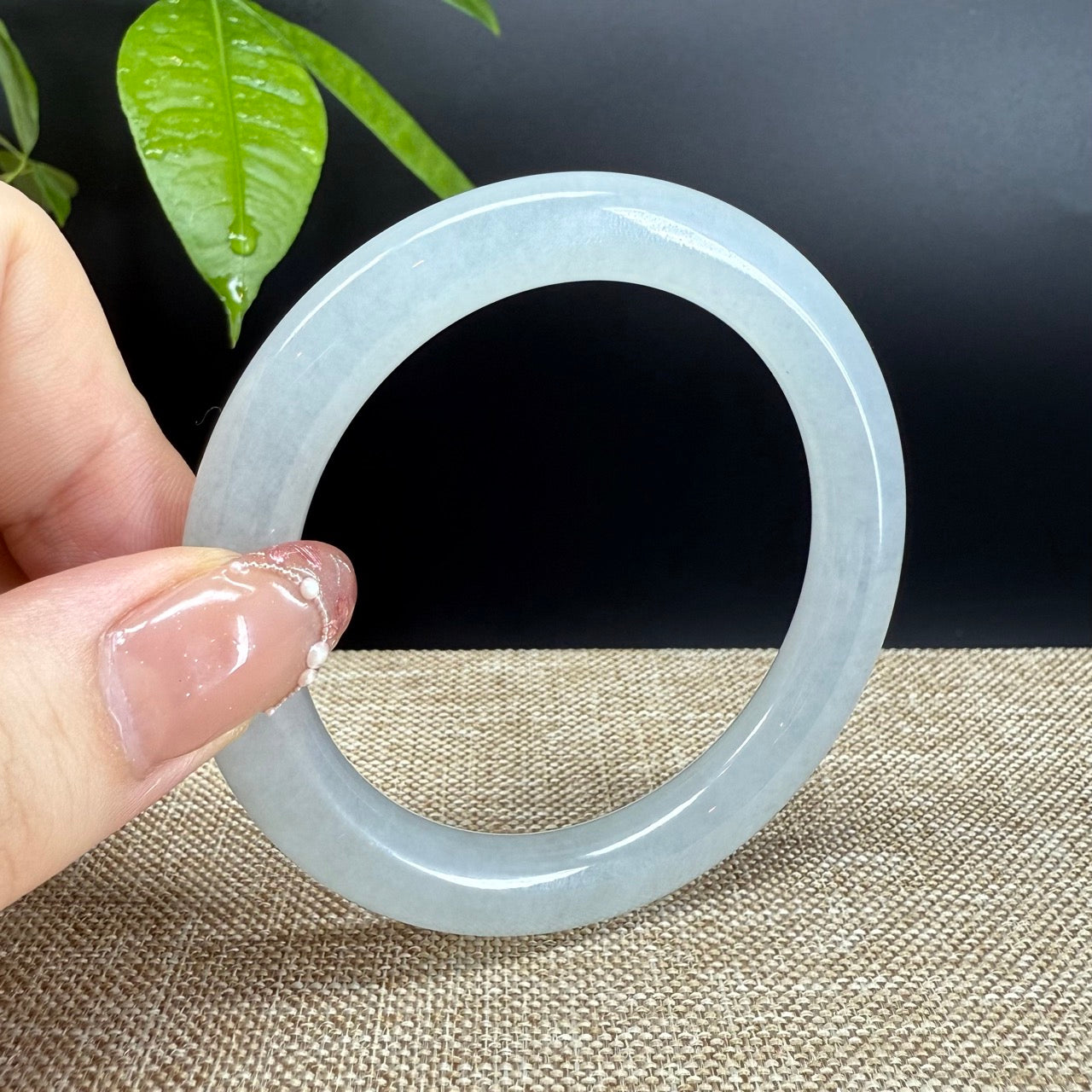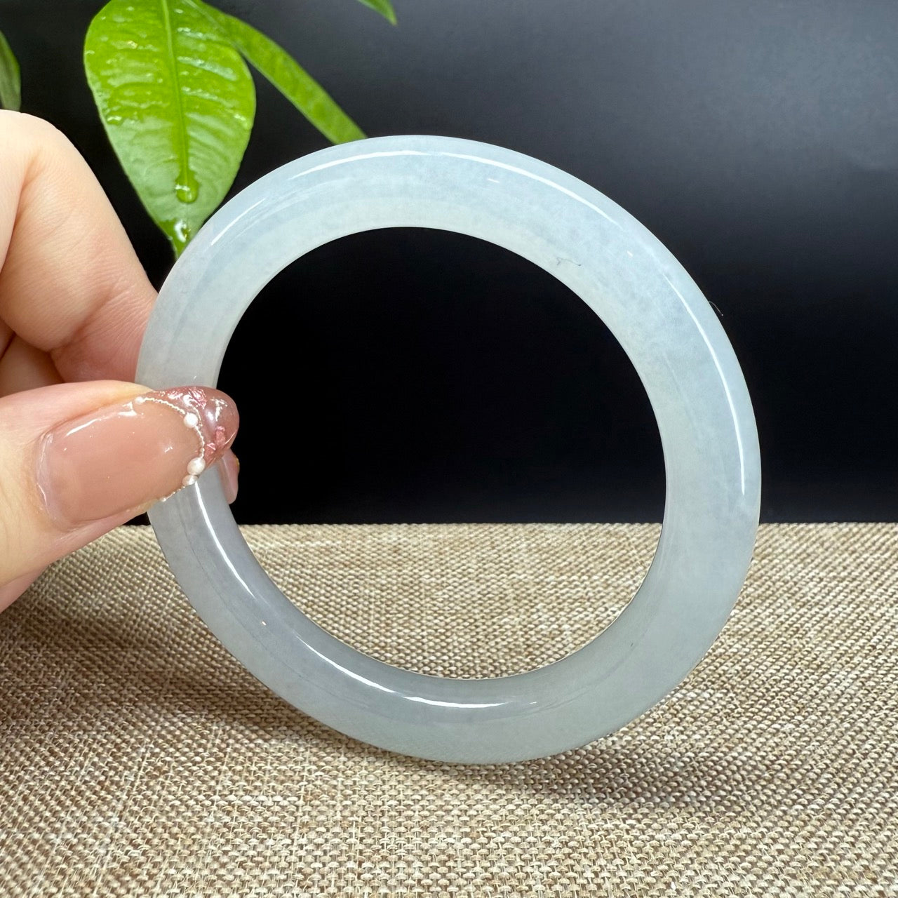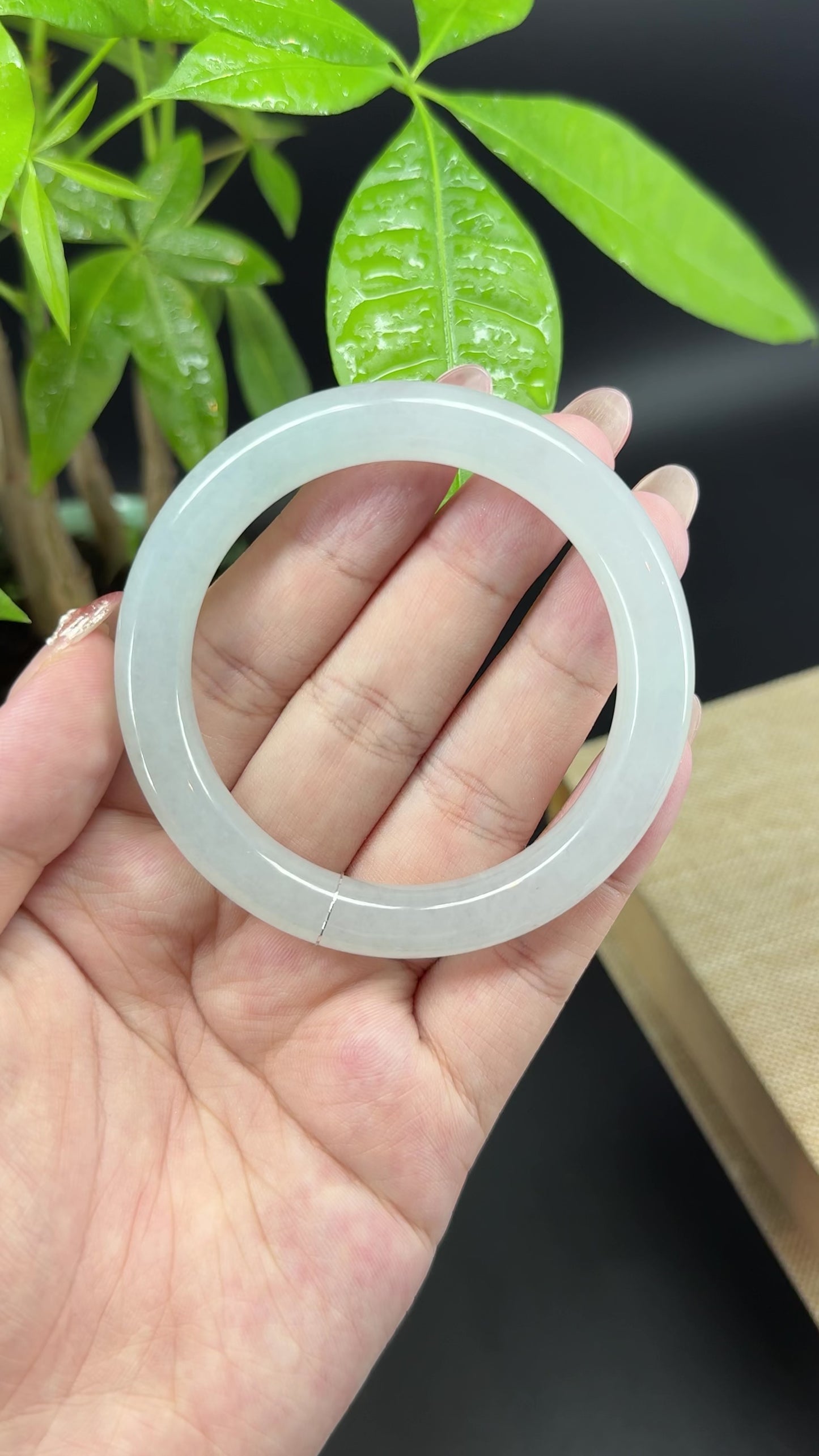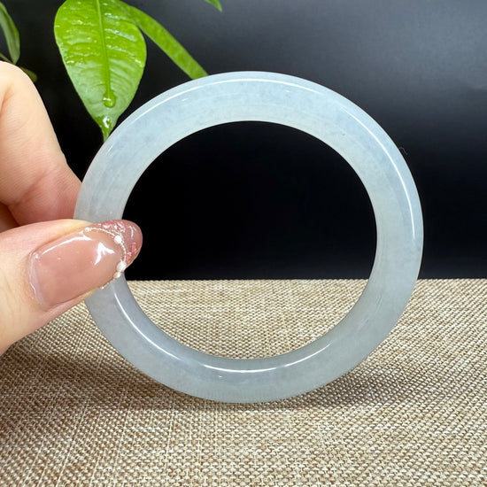 * DETAILS--- Genuine Burmese Jadeite Jade Bangle Bracelet. This jade displays a icy, translucent texture with soft moonlight tones flowing throughout—captivating and full of elegance. The round shape is suitable for those who prefer traditional style and have a more rounded wrist. More than just a piece of jewelry, this is a rare treasure—an elegant statement and a valuable investment in genuine Grade—A jadeite.