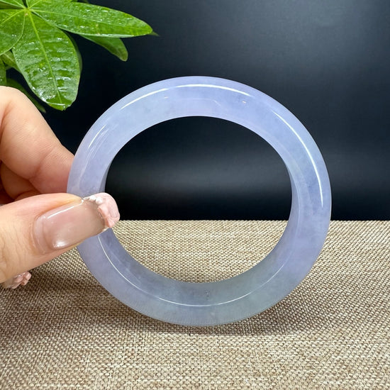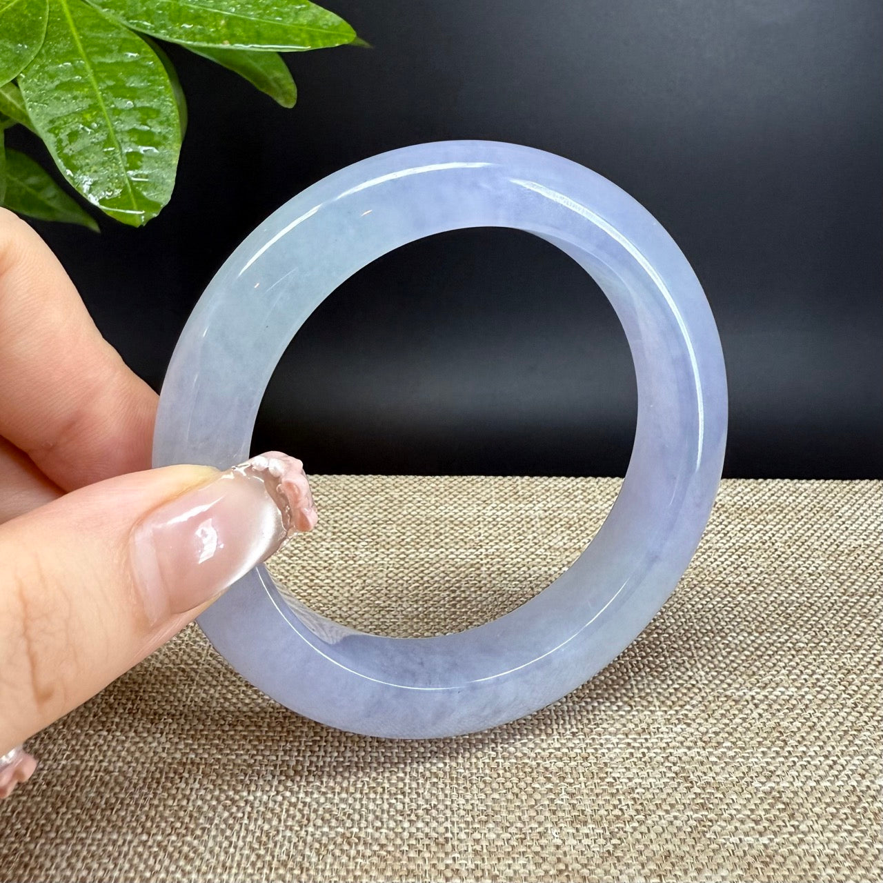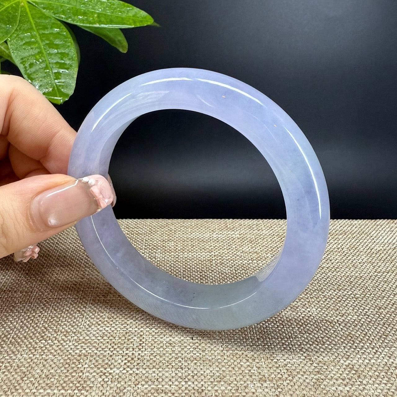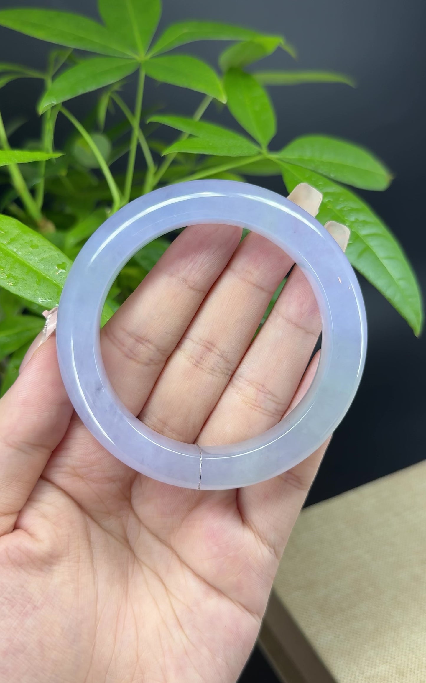 * DETAILS--- Genuine Burmese Jadeite Jade Bangle Bracelet. This jade displays a luminous, translucent texture with purple lavender tone flowing throughout—captivating and full of character. The half round shape offers both comfort and a perfect display of the jade’s natural beauty. More than just a piece of jewelry, this is a rare treasure—an elegant statement and a valuable investment in genuine Grade-A jadeite.