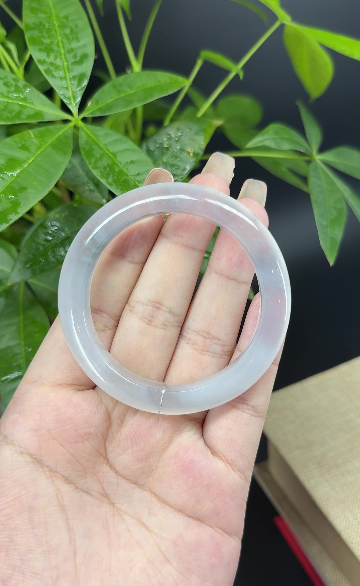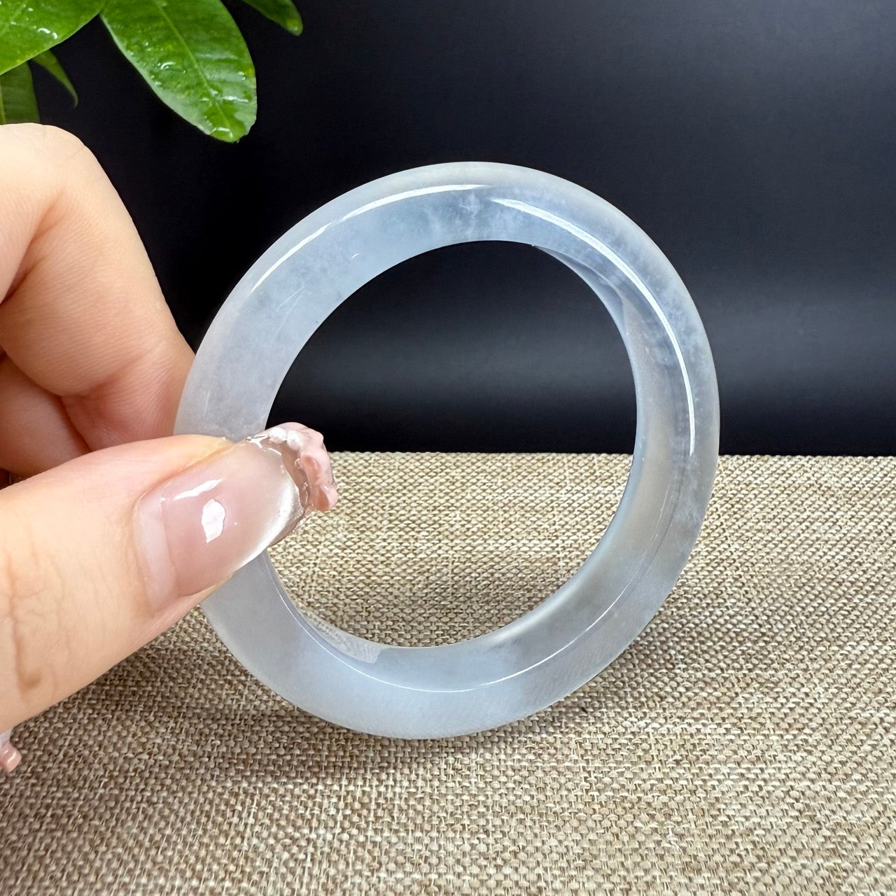 DETAILS--- Genuine Burmese Jadeite Jade Bangle Bracelet. Just like thunderstorm blizzard, this jade displays a luminous, translucent texture with blue(thunder)-white(snow)-gray(clouds) color—captivating and full of character. Such mesmerizing and amazing color combination. More than just a piece of jewelry, this is a rare treasure—an elegant statement and a valuable investment in genuine Grade-A jadeite.