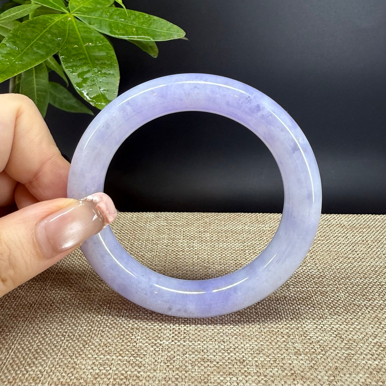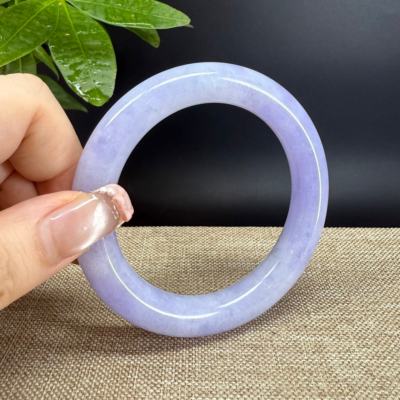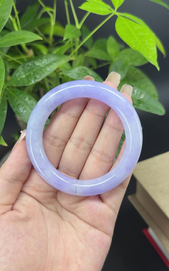 DETAILS--- Genuine Burmese Jadeite Jade Bangle Bracelet. This jade displays a smooth, translucent texture with vixen purple tones flowing throughout—captivating and full of character. The traditional round silhouette showcases nature's artistry in smooth, luxurious curves. More than just a piece of jewelry, this is a rare treasure—an elegant statement and a valuable investment in genuine Grade-A jadeite.