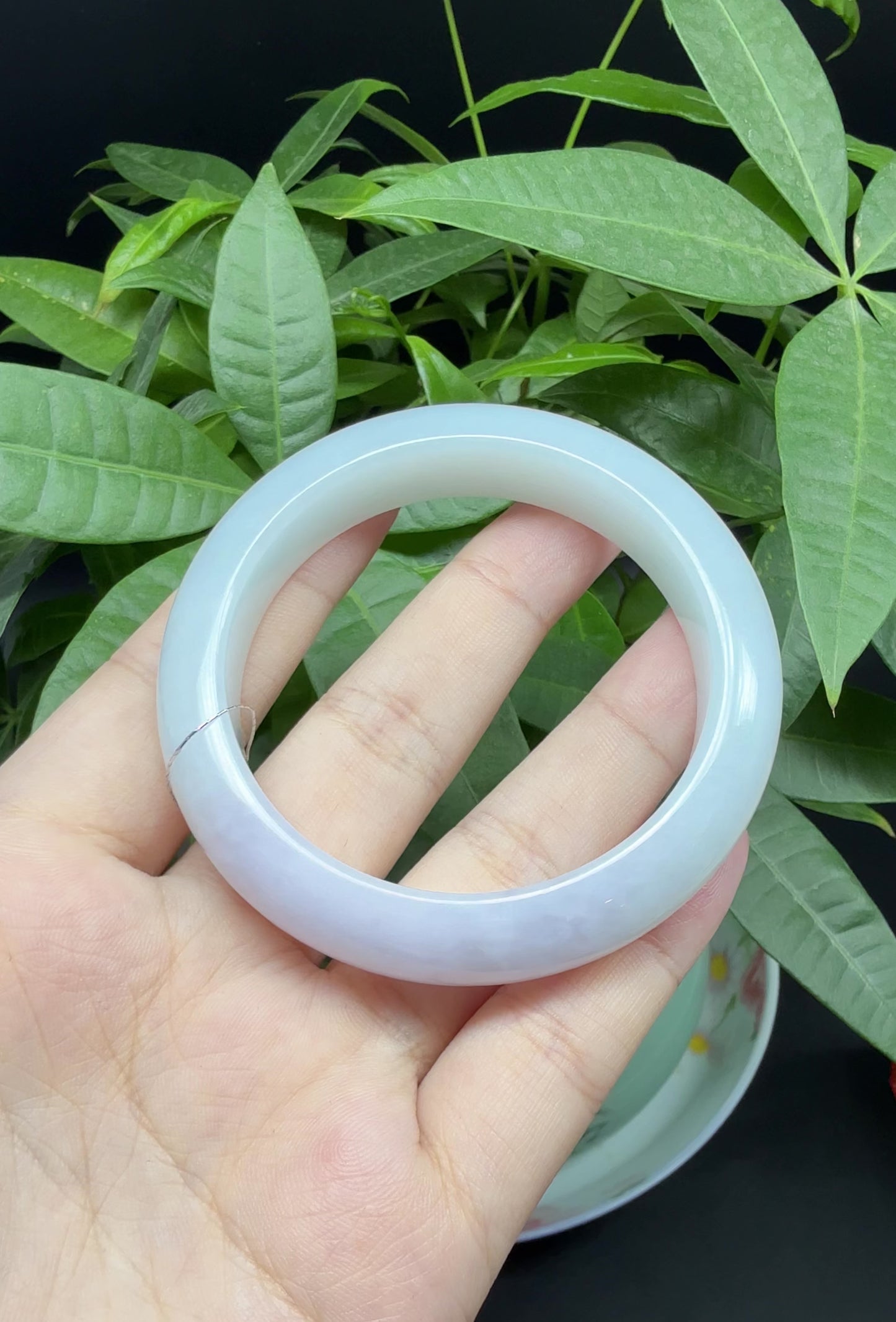 * DETAILS--- Genuine Burmese Jadeite Jade Bangle Bracelet. This exquisite bangle is crafted from premium Burmese jadeite in a white hue with a touch of lavender. With its smooth texture and captivating color, it radiates a timeless elegance and cultural heritage. Known to symbolize protection and strength, jade bangles hold deep meaning, making this piece a thoughtful, one-of-a-kind gift for yourself or someone truly special.