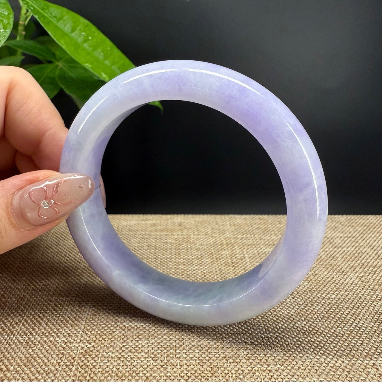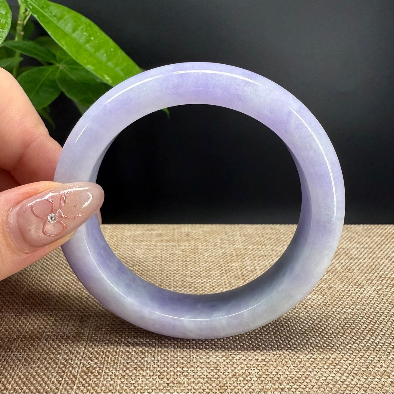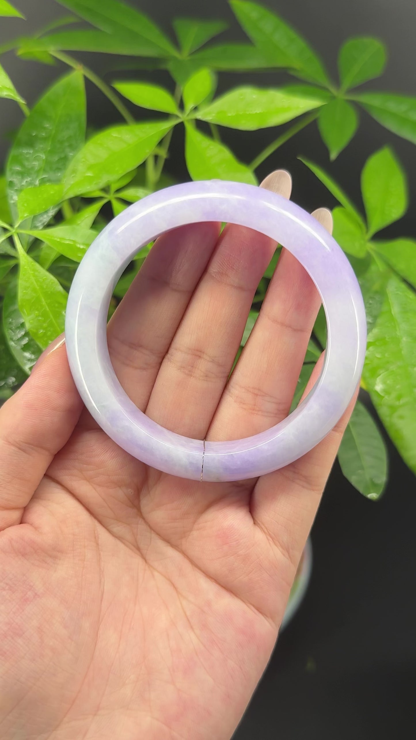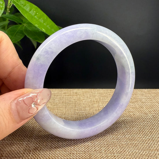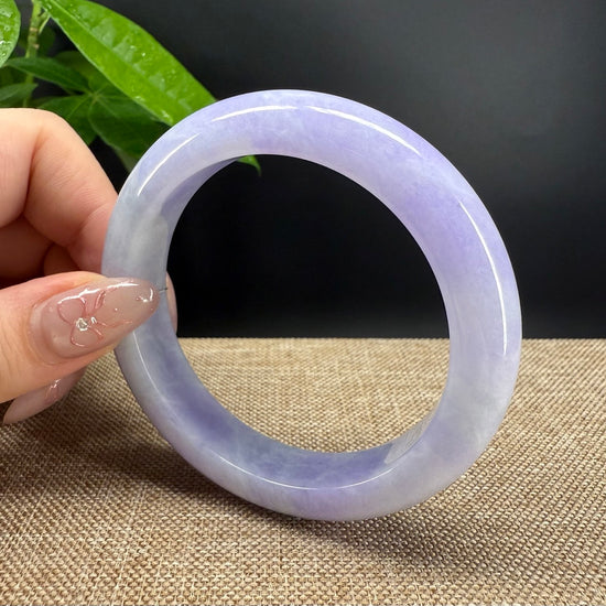 * DETAILS--- Genuine Burmese Jadeite Jade Bangle Bracelet. This bangle is made with very high quality genuine Burmese Lavender Jadeite jade in a half round silhouette. The jade texture is so smooth with lavender and milky white blending so well that it manifests an elegance and serene. It's a high-end gift for yourself or your love.
