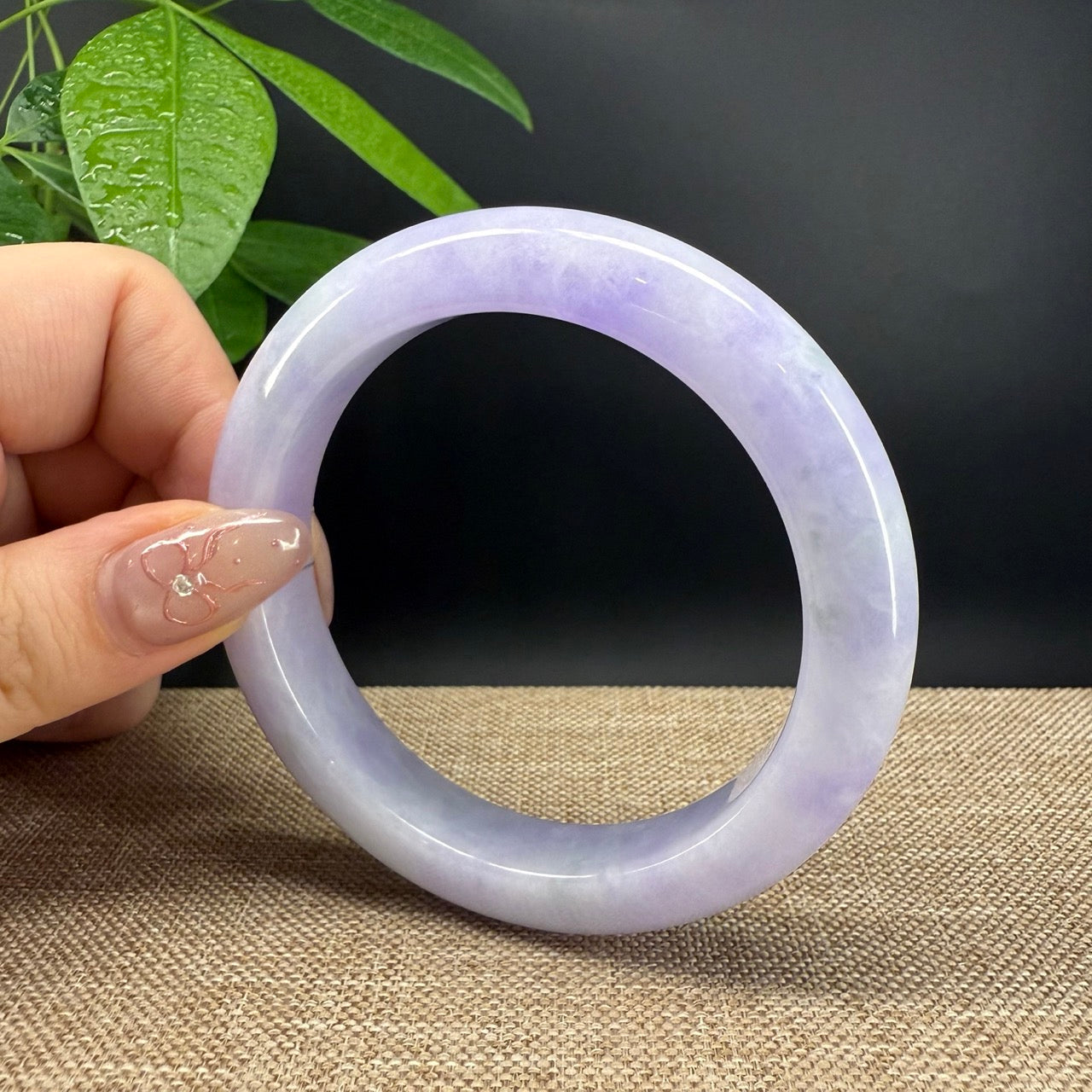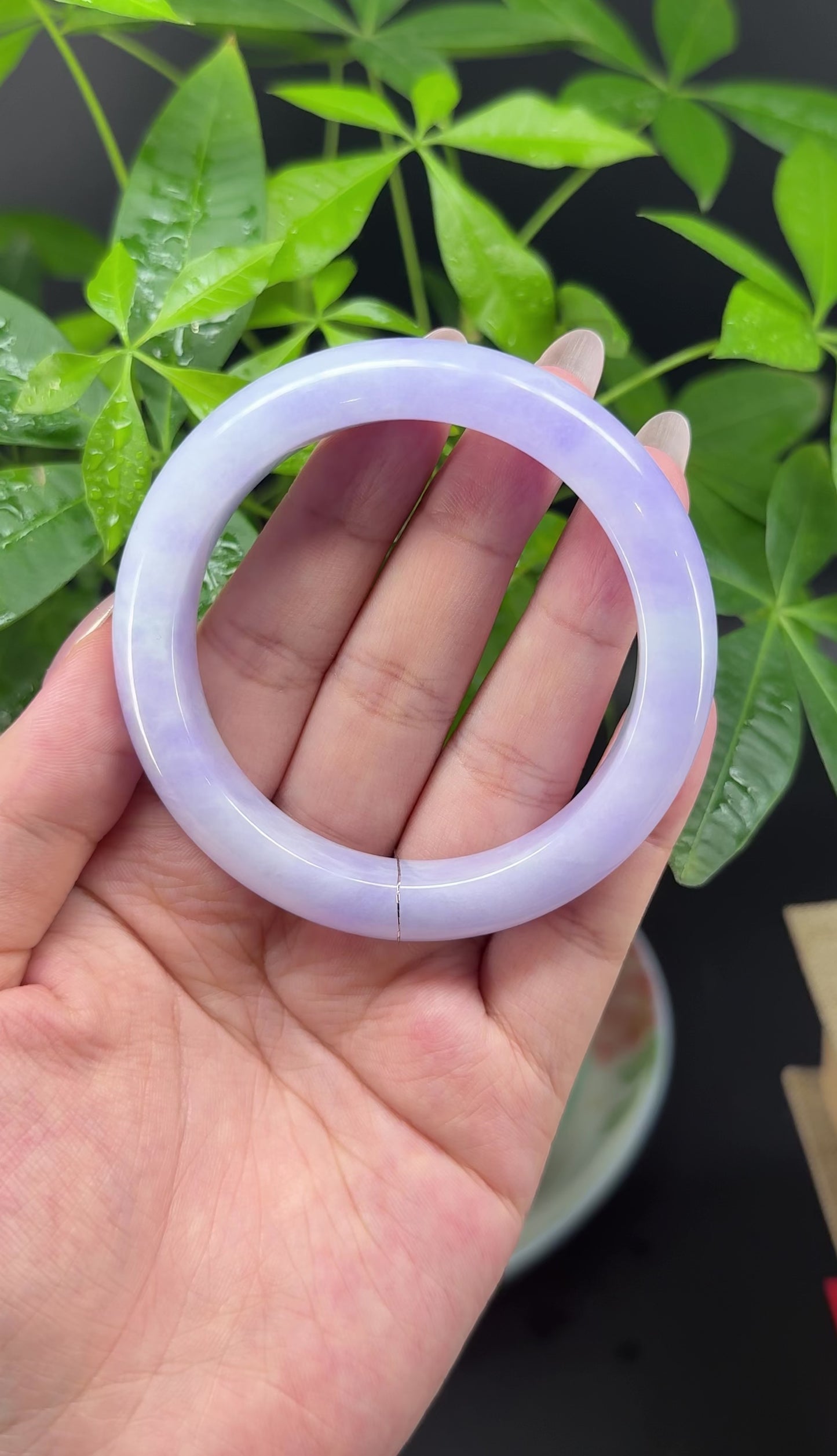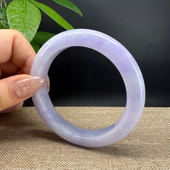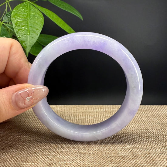 * DETAILS--- Genuine Burmese Jadeite Jade Bangle Bracelet. This bangle is made with very high quality genuine Burmese Lavender Jadeite jade in a half round silhouette. The jade texture is so smooth with lavender and milky white blending so well that it manifests an elegance and serene. It's a high-end gift for yourself or your love.