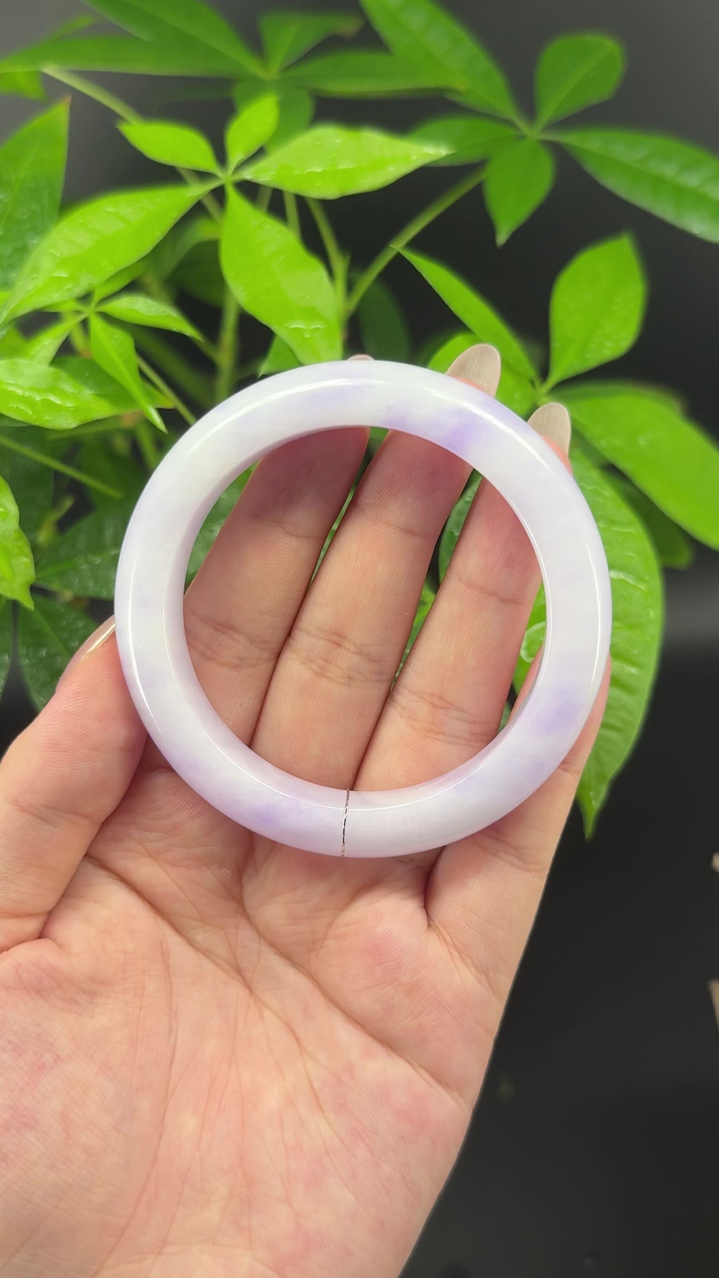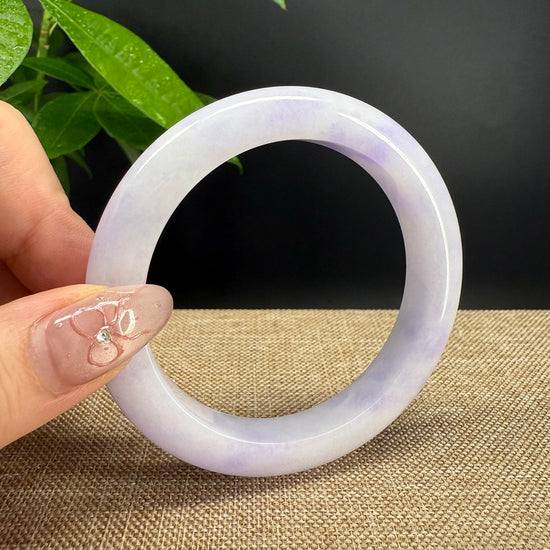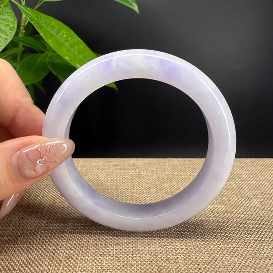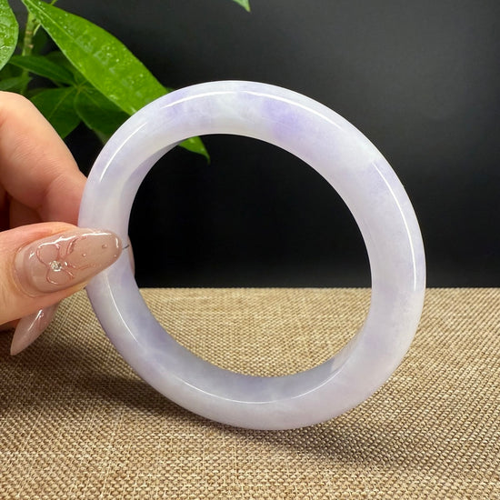 * DETAILS--- Genuine Burmese Jadeite Jade Bangle Bracelet. This bangle is made with very high quality genuine Burmese Lavender Green Jadeite jade, The jade texture is so transparent with Lavender-green color inside. The lavender-green color and transparency texture, truly a mesmerizing combination. The Classic half-round style bracelet. it looks completely luxurious and perfect. It's a high-end gift for yourself or your love.