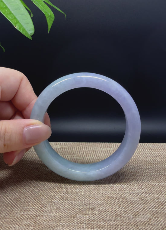 * DETAILS--- This beautiful bangle is made from premium Burmese ice lavender jadeite jade. Its transparent texture and captivating green color create a truly stunning effect. The classic half-round style adds sophistication and elegance, making this bracelet a luxurious addition to any collection. More than jewelry, it carries centuries of Eastern wisdom - a wearable heirloom for the discerning collector.