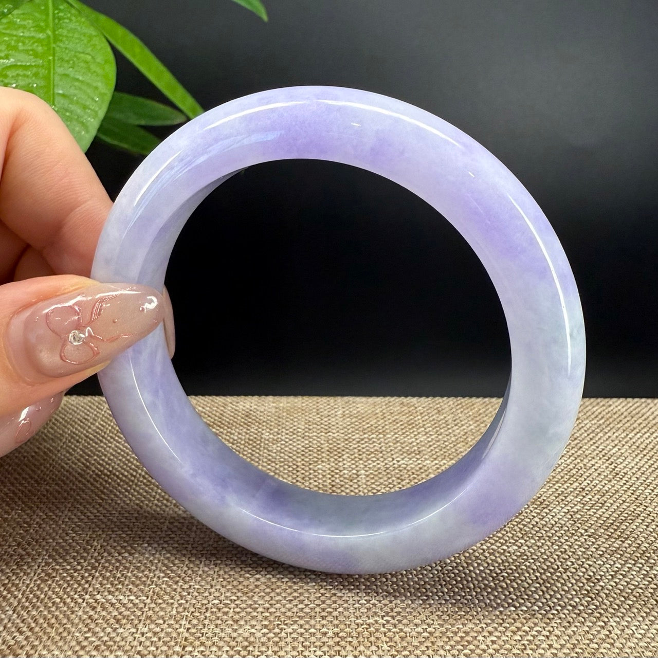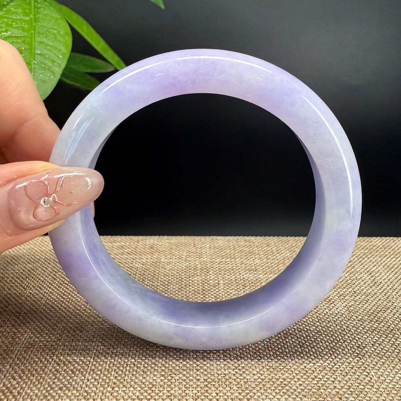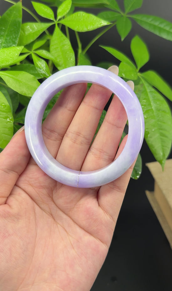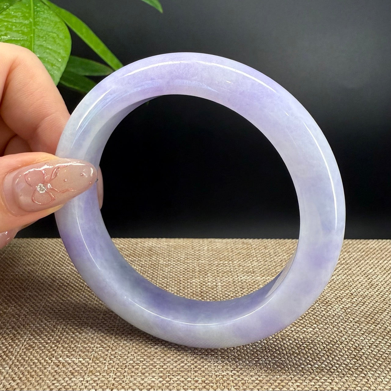 * DETAILS--- Genuine Burmese Jadeite Jade Bangle Bracelet. This bangle is made with very high quality genuine Burmese Lavender Jadeite jade in a half round silhouette. The jade texture is so smooth with lavender and milky white blending so well that it manifests an elegance and serene. More than jewelry, it carries centuries of eastern wisdom-a wearable heirloom for the discerning collector.