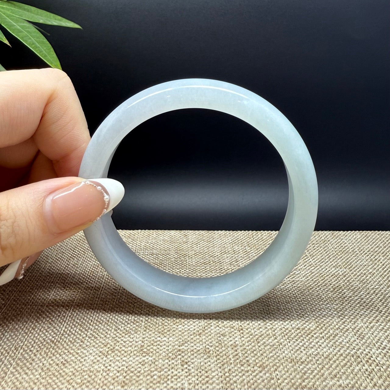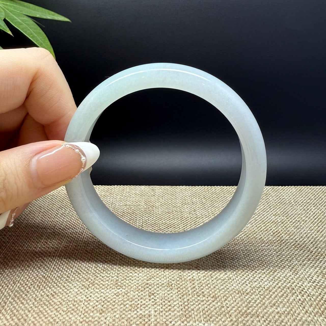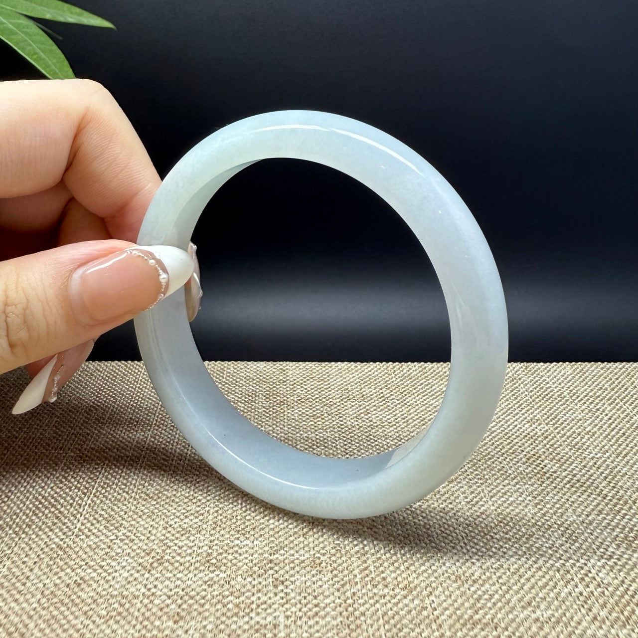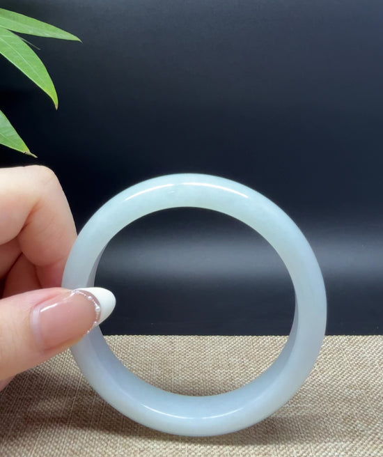 * DETAILS--- Genuine Burmese Jadeite Jade Bangle Bracelet. This bangle is made with very high-quality genuine Burmese Jadeite jade. The jade texture is translucent and smooth with apple green color. The half round shape offers both comfort and a perfect display of the jade’s natural beauty. It's a unique gift for you and your love.