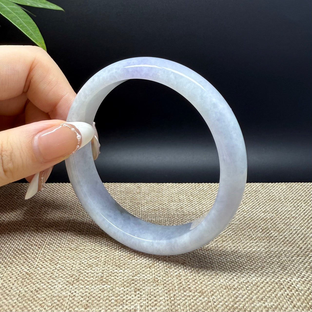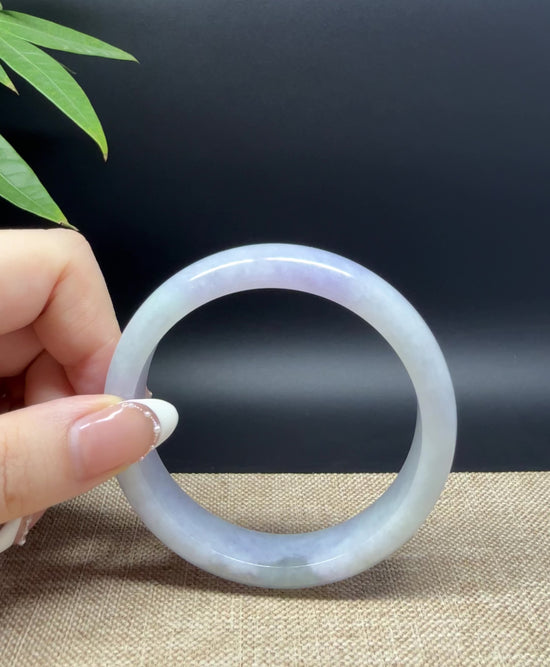 * DETAILS--- Genuine Burmese Jadeite Jade Bangle Bracelet. This bangle is made with very high-quality genuine Burmese Jadeite jade. The jade texture is fine and smooth with lavender + grey-white base. The half round shape offers both comfort and a perfect display of the jade’s natural beauty. It's a unique gift for you and your love.