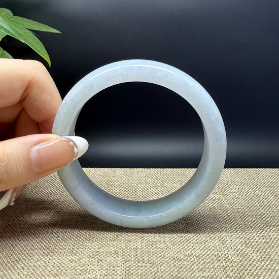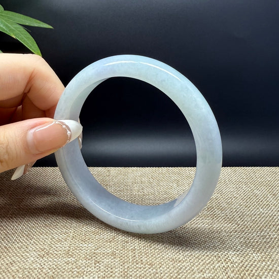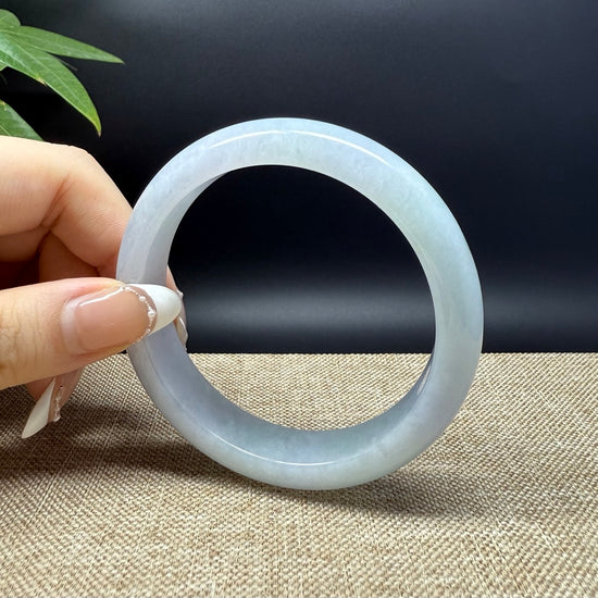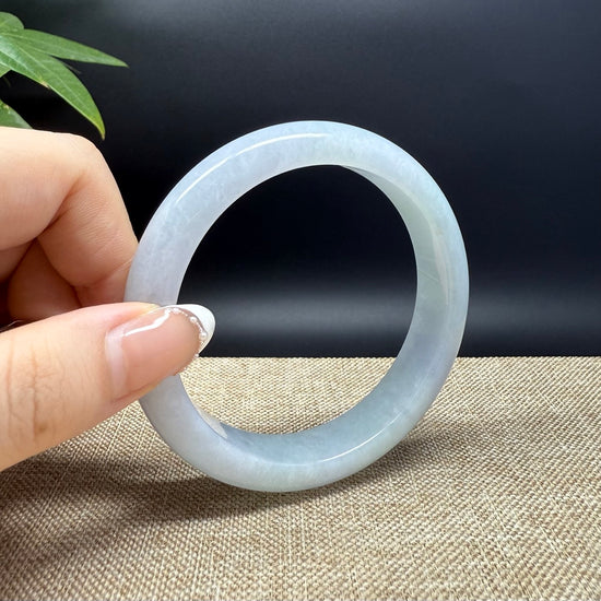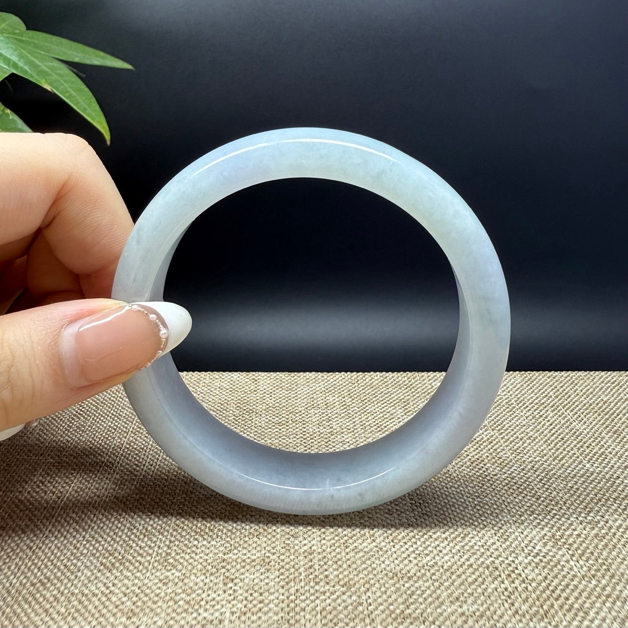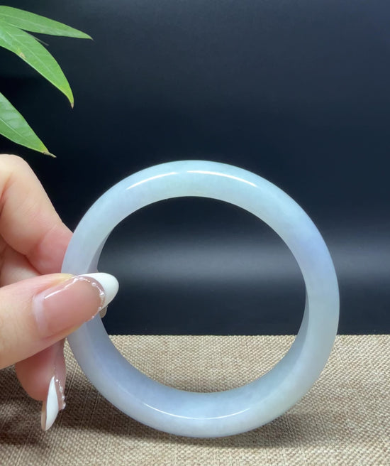 * DETAILS--- Genuine Burmese Jadeite Jade Bangle Bracelet. This bangle is made with very high-quality genuine Burmese Jadeite jade. The jade texture is fine and smooth with blue-white color. The half round shape offers both comfort and a perfect display of the jade’s natural beauty. It's a unique gift for you and your love.