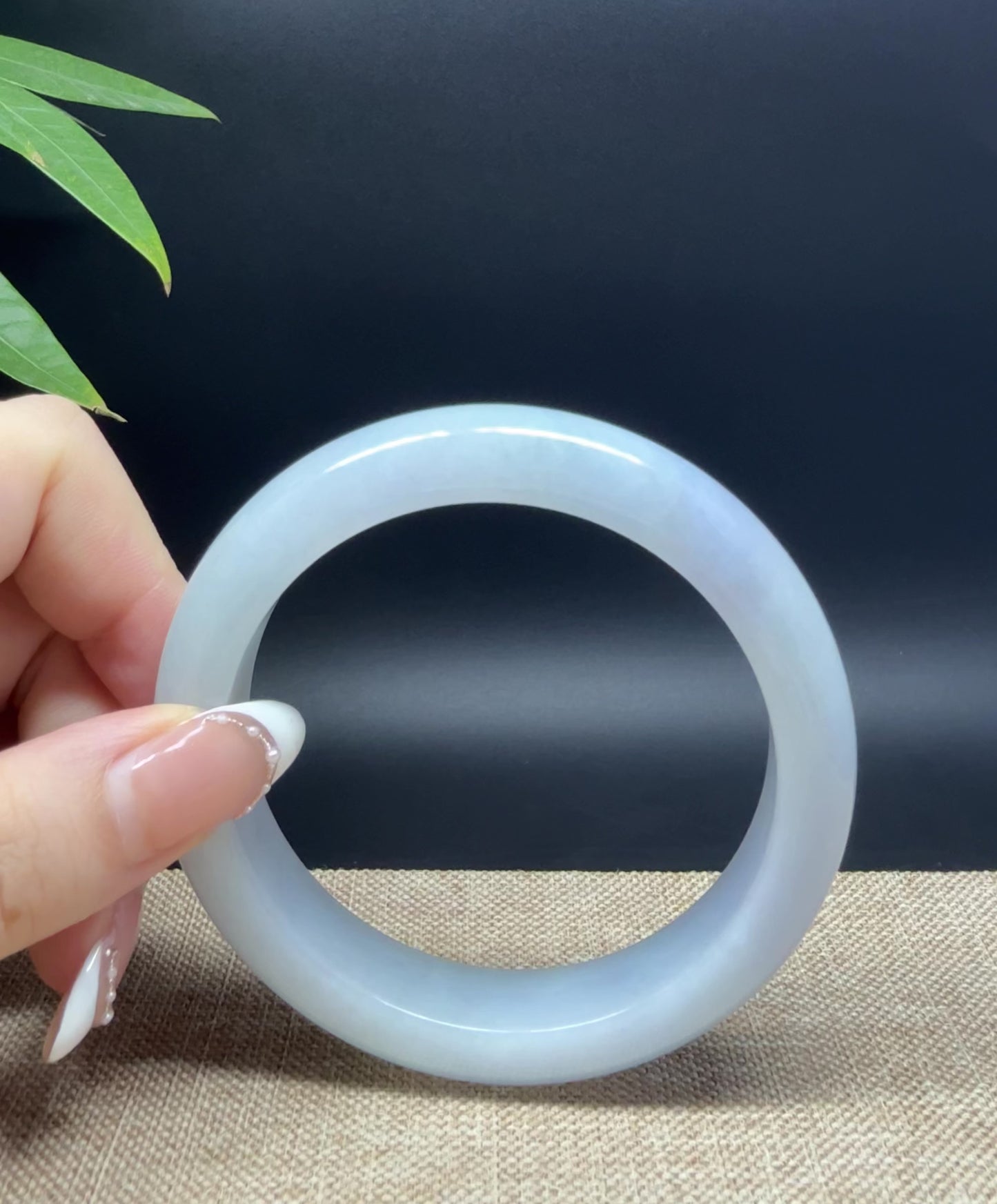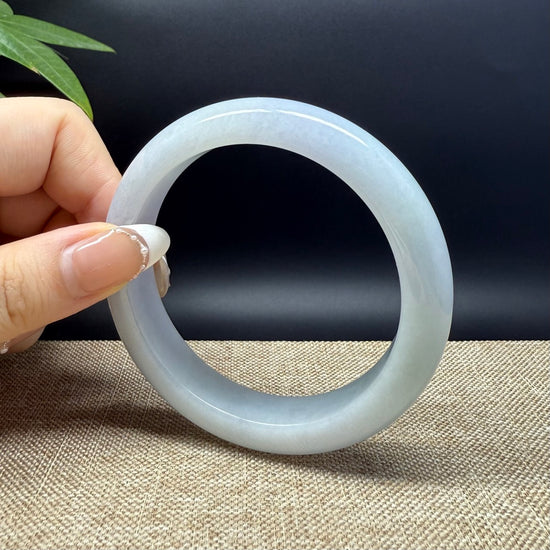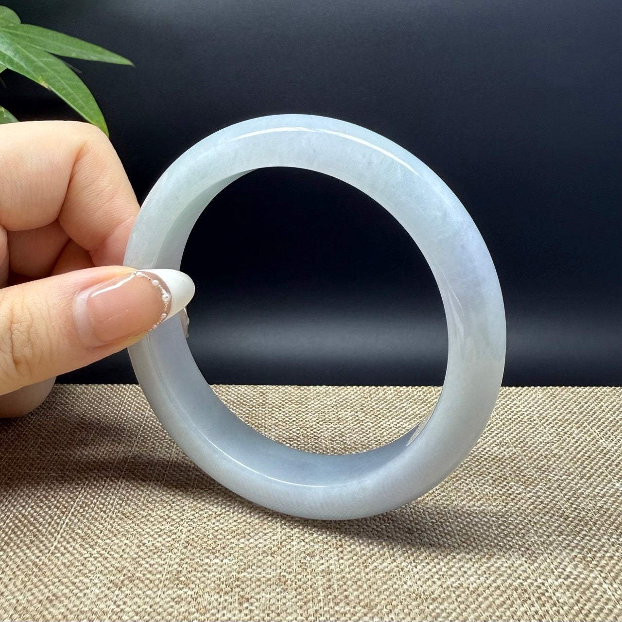 * DETAILS--- Genuine Burmese Jadeite Jade Bangle Bracelet. This bangle is made with very high-quality genuine Burmese Jadeite jade. The jade texture is fine and smooth with apple green-light lavender color. The half round shape offers both comfort and a perfect display of the jade’s natural beauty. It's a unique gift for you and your love.