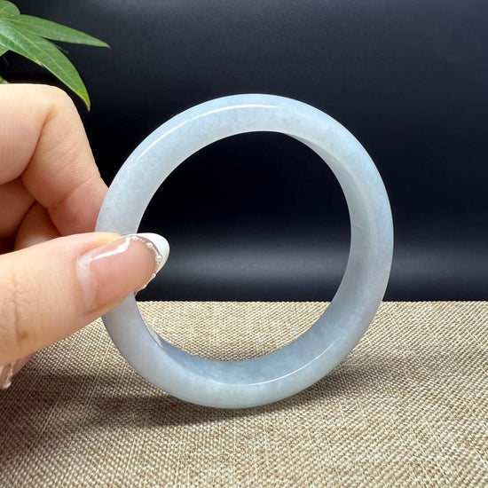 * DETAILS--- Genuine Burmese Jadeite Jade Bangle Bracelet. This bangle is made with very high-quality genuine Burmese Jadeite jade. The jade texture is fine and smooth with grey-lavender color. The half round shape offers both comfort and a perfect display of the jade’s natural beauty. It's a unique gift for you and your love.