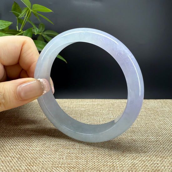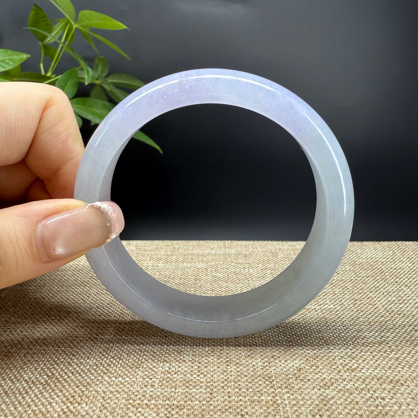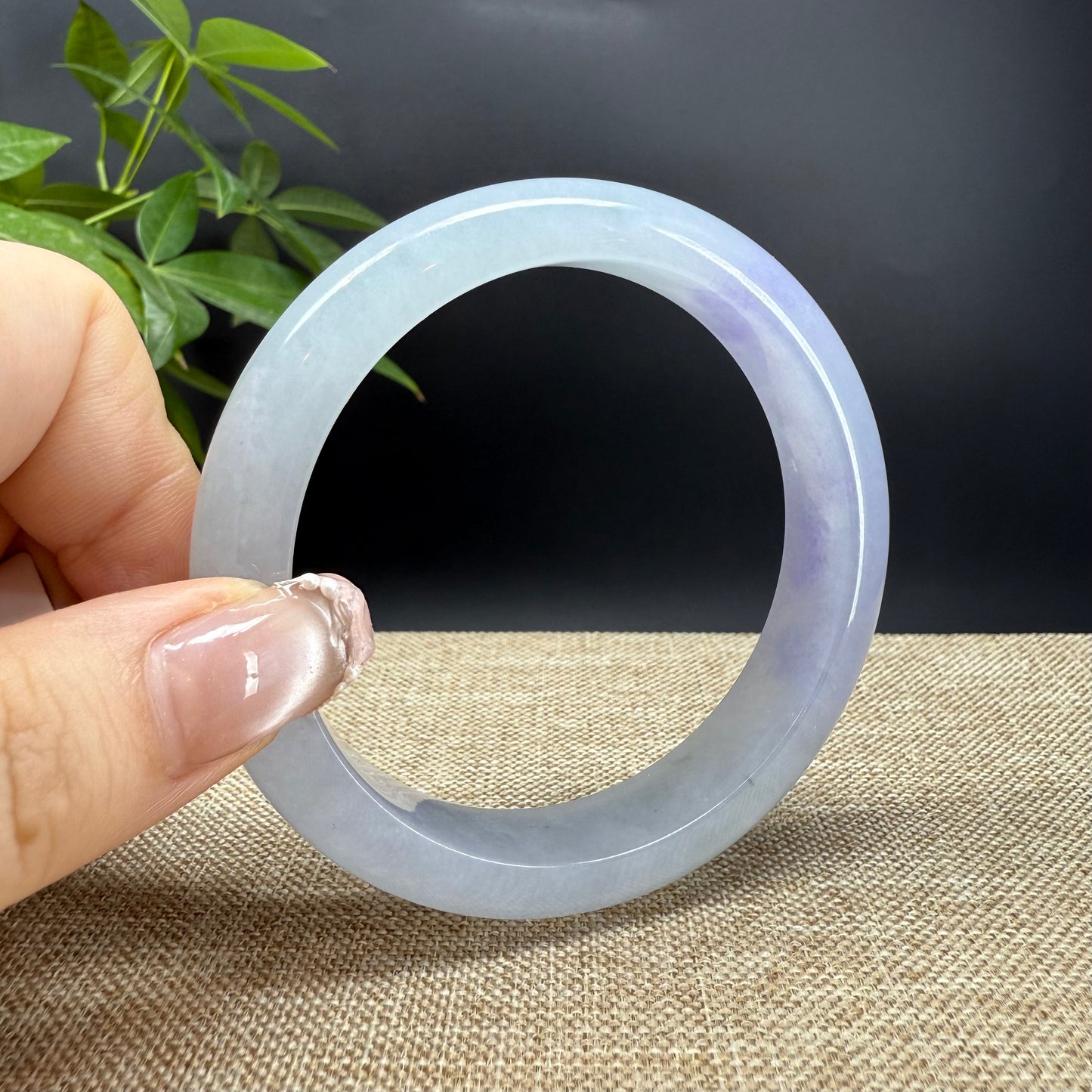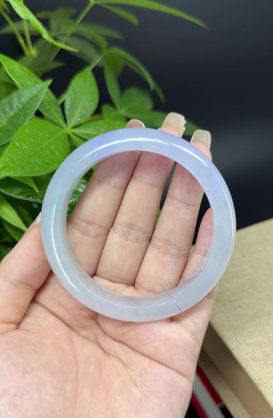 * DETAILS--- Genuine Burmese Jadeite Jade Bangle Bracelet. This bangle is made with very high-quality genuine Burmese Jadeite jade. The jade texture is translucent and icy with lavender-grey base color. The half round shape offers both comfort and a perfect display of the jade’s natural beauty. With its icy, translucent texture and captivating color, it radiates a timeless elegance and cultural heritage, making this piece a collectible, one-of-a-kind gift for yourself or someone truly special.