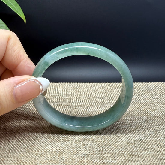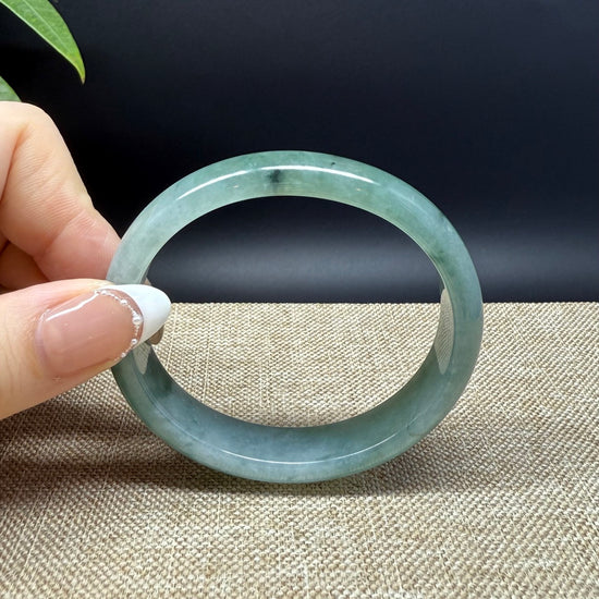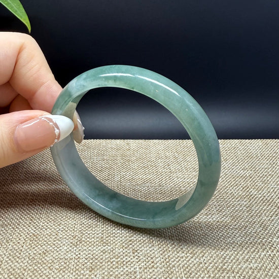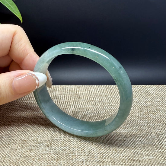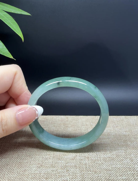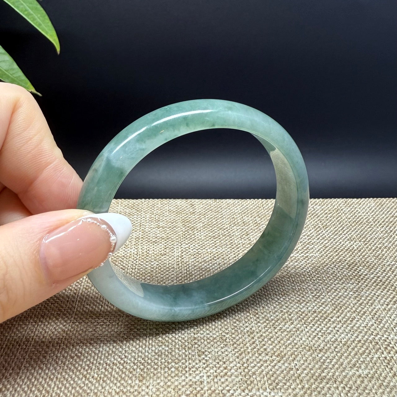 * DETAILS--- Genuine Burmese Jadeite Jade Bangle Bracelet. This bangle is made with very high-quality genuine Burmese Jadeite jade. The jade texture is icy and translucent with lake green base and a part of blue-white. The oval half round shape is particularly suitable for people with petite hands, as its shape conforms to the natural curve of the wrist, fitting snugly to make the hands appear more slender and elegant. It's a unique gift for you and your love.