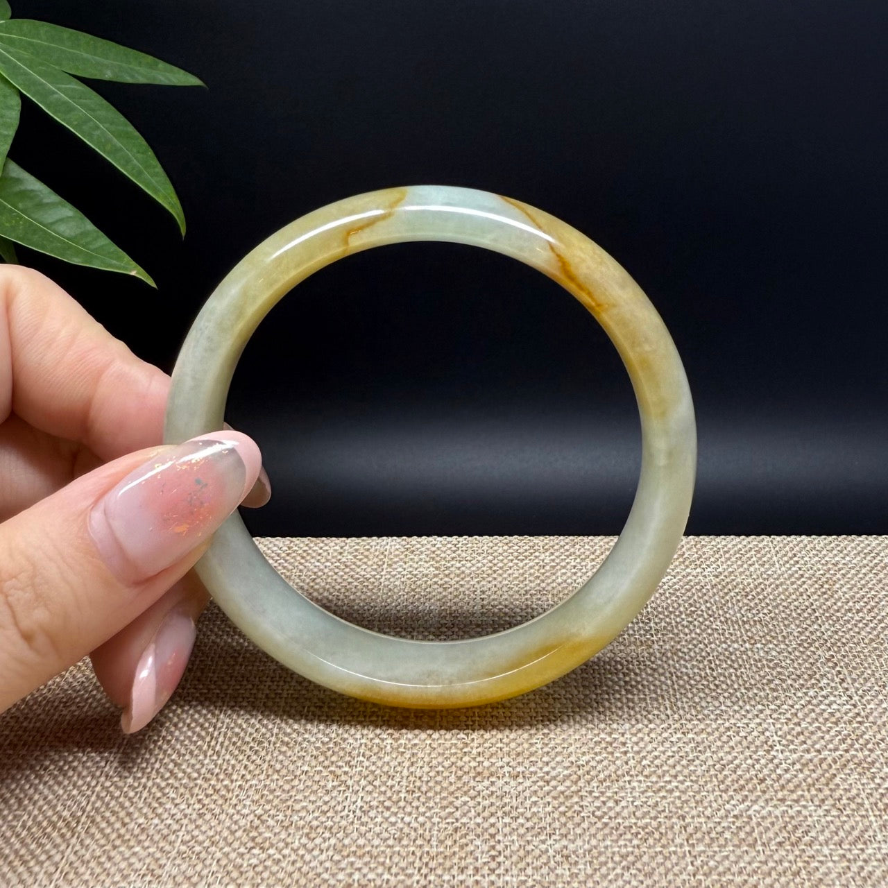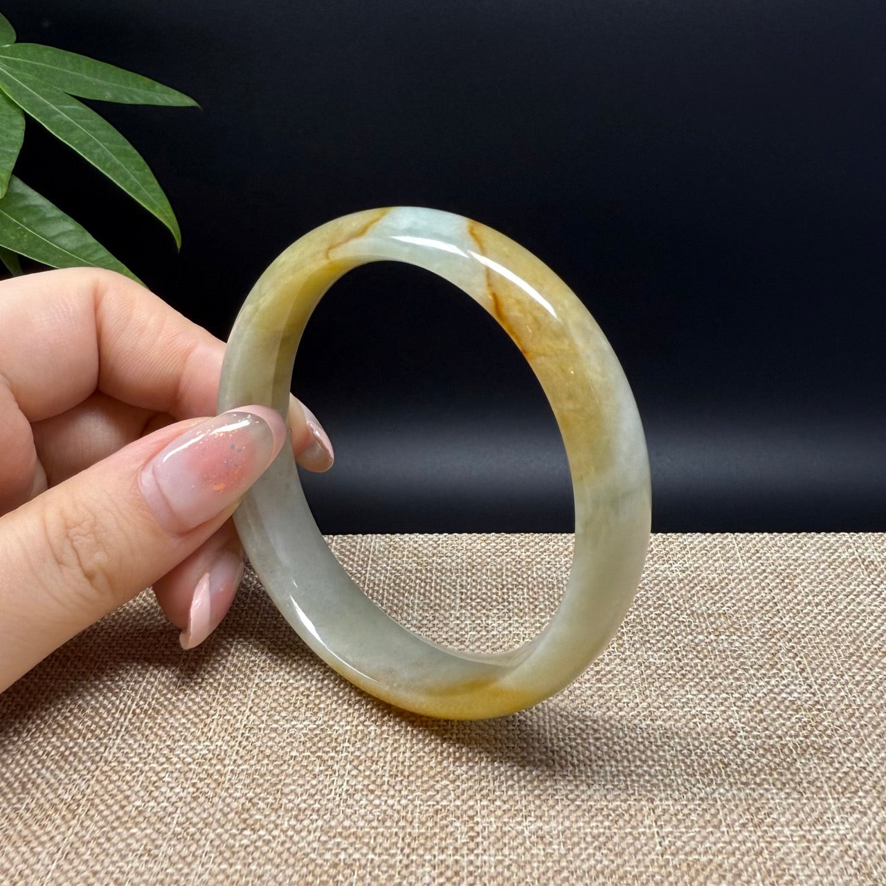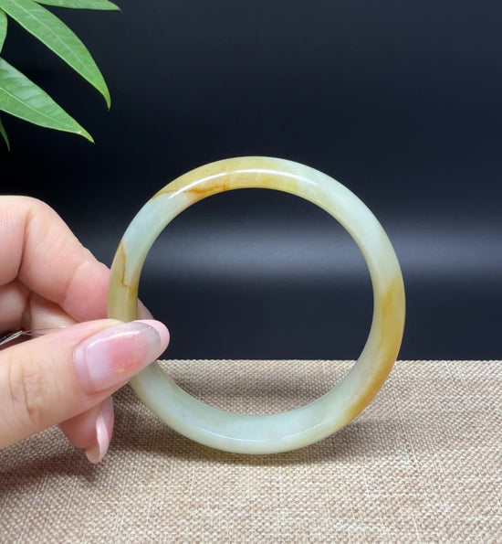 * DETAILS--- Genuine Burmese Jadeite Jade Bangle Bracelet. This bangle is made with very high quality genuine Burmese Yellow Green Jadeite jade, The jade texture is so transparent with yellow-green color inside. The yellow-green color and transparency texture, truly a mesmerizing combination. The Classic half round style bracelet. it looks completely luxurious and perfect. It's a high-end gift for yourself or your love.