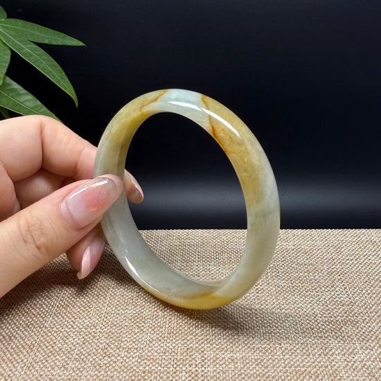 Genuine Burmese Yellow Green Jade Jadeite Bangle Bracelet ( 57.3mm )
