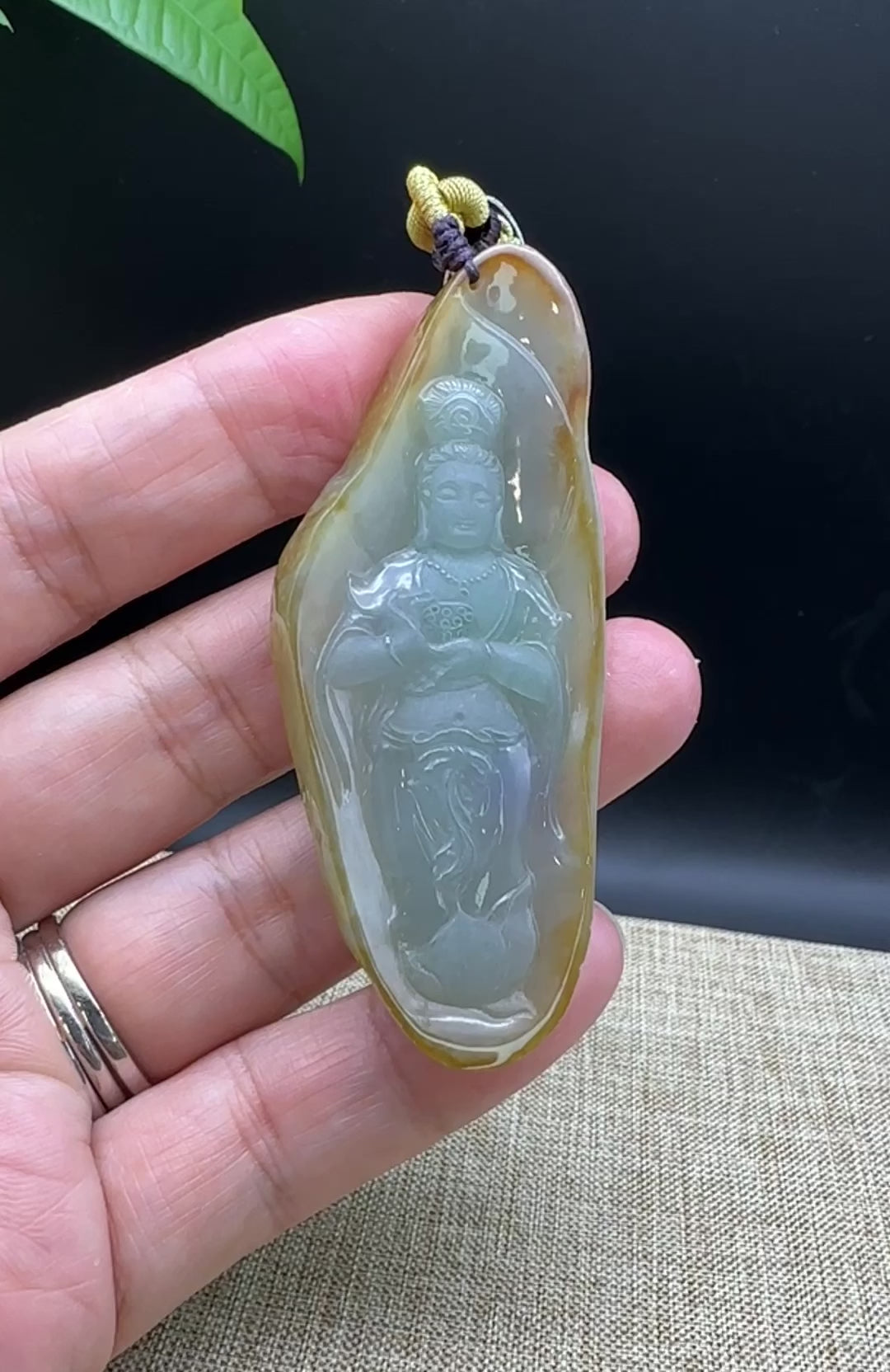 "Goddess of Compassion" Genuine Burmese Jadeite Jade Guanyin Necklace