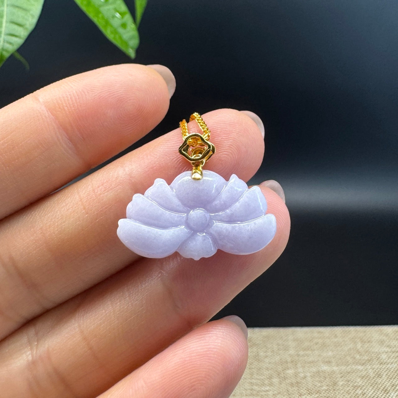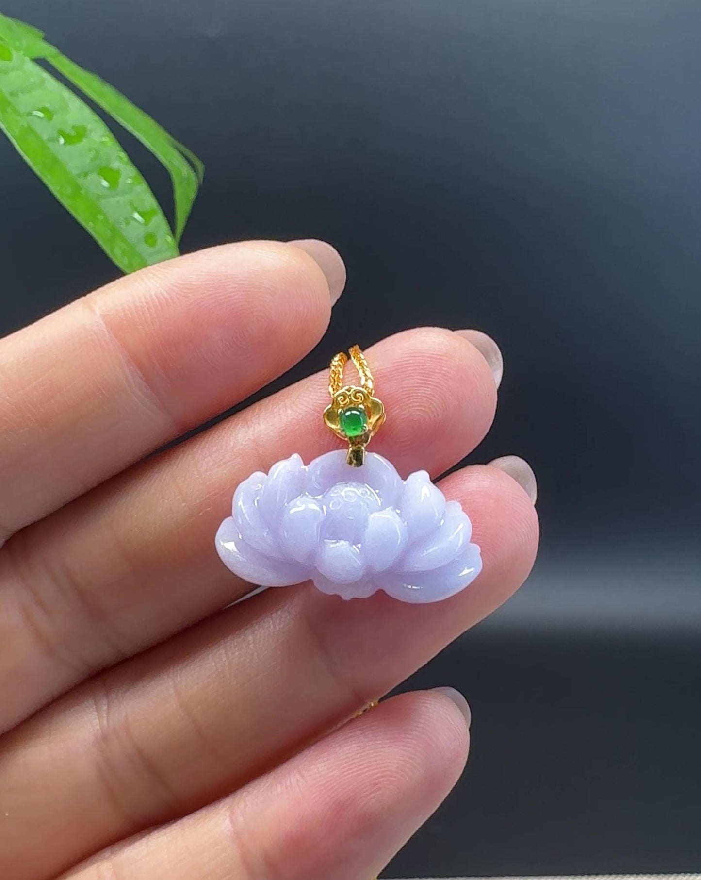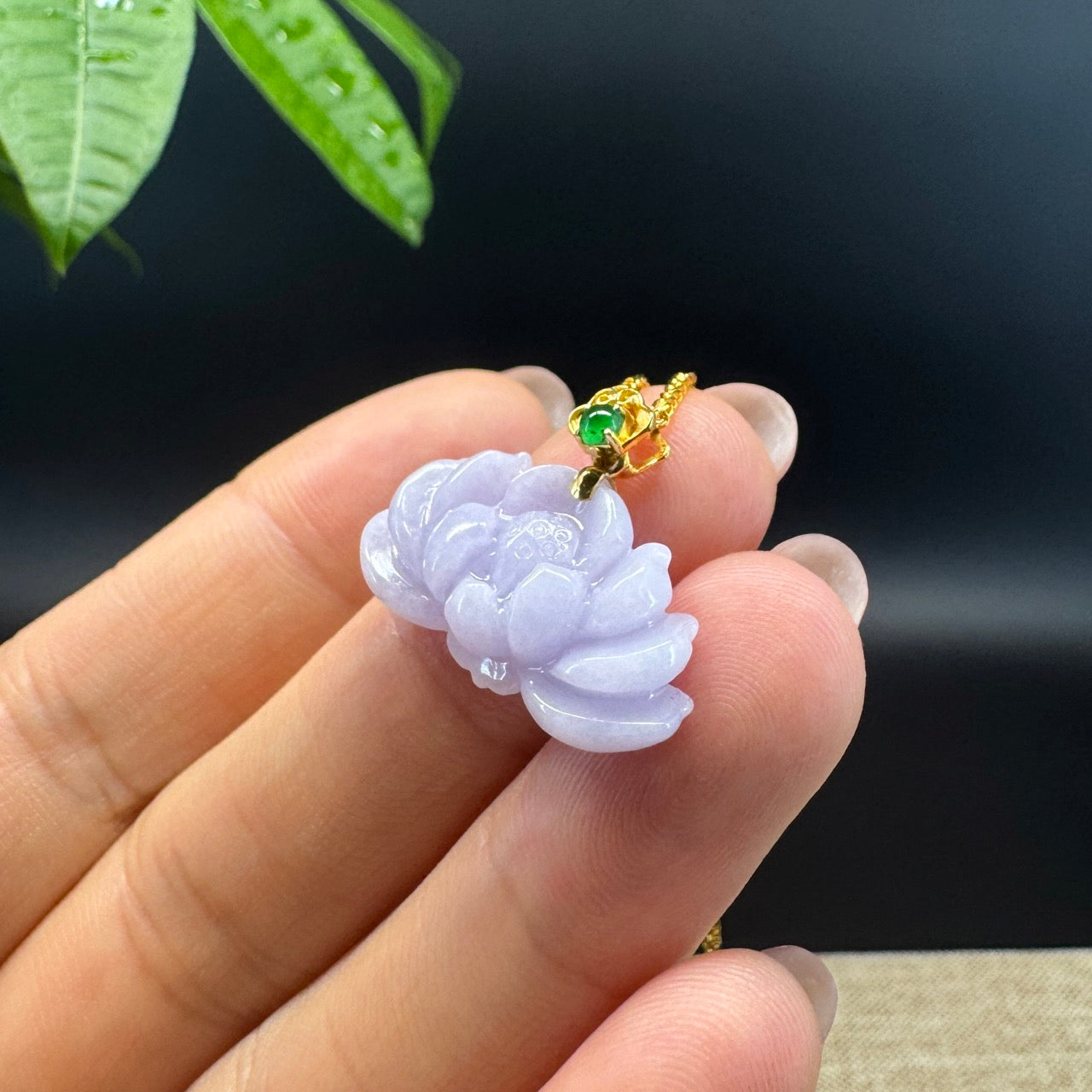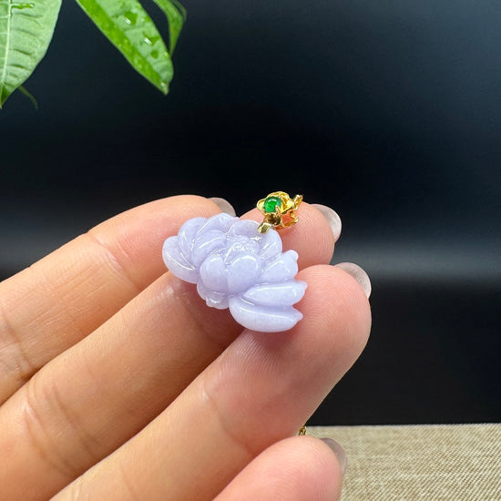 *Design concept-- Genuine lavender Jade fashioned into a section of Lucky Lotus as accent. This pendant is made with high-quality Burmese lavender jadeite jade. The jade texture is smooth with 18k yellow gold and imperial jade bail. Looks so nice! The pendant depicts a Magic Lotus to complete the picture. To represent wealth, health and good fortune. It's a special gift for yourself or your love.