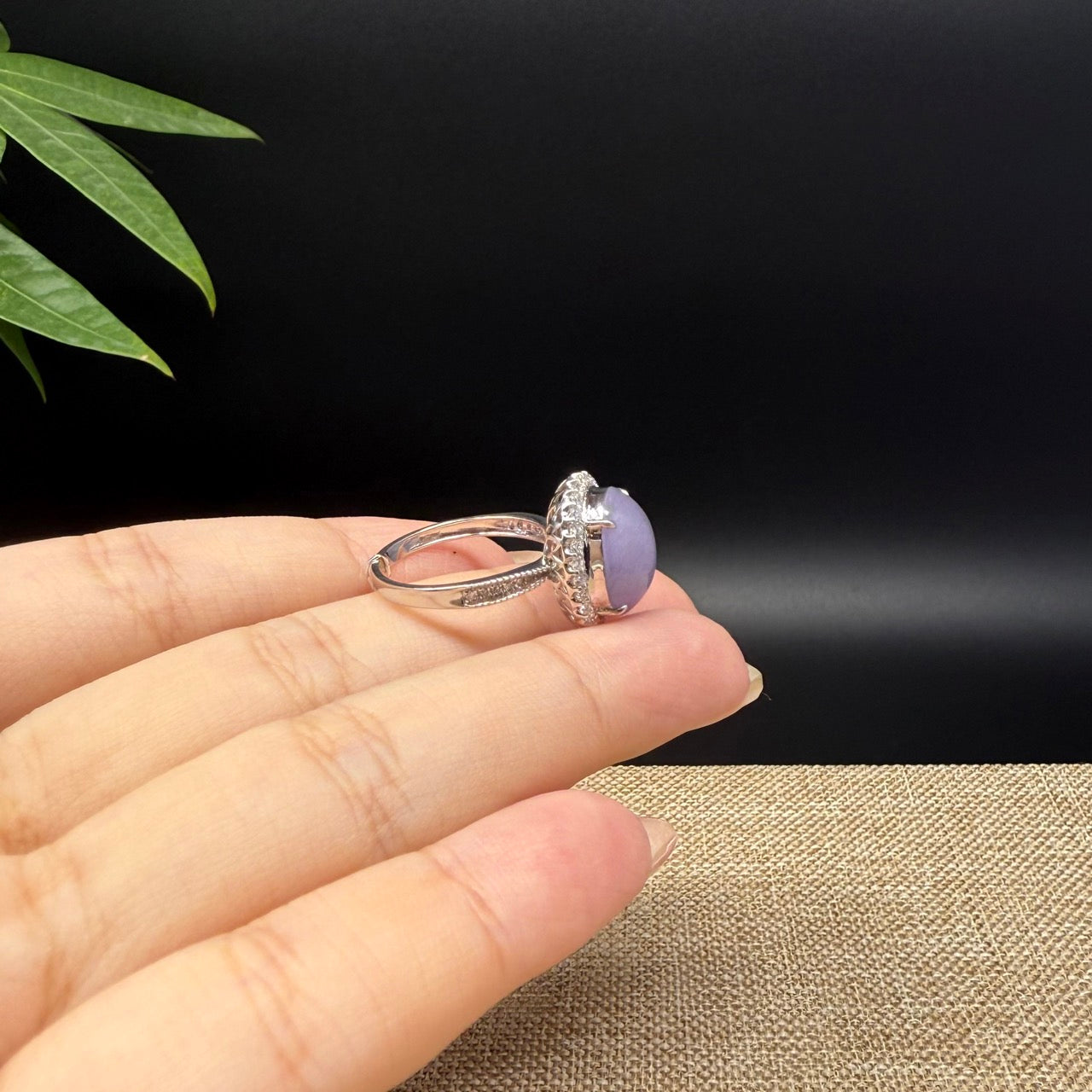 Design concept --- Inspired by the natural beauty of genuine Burmese lavender Jadeite jade. The rich, beautiful translucent lavender color is found on no other stone. This one-of-a-kind engagement ring combines the natural beauty of the extremely rare gem with everyday luxury. Exquisite designs add details to admire and uniqueness to your everyday memento.