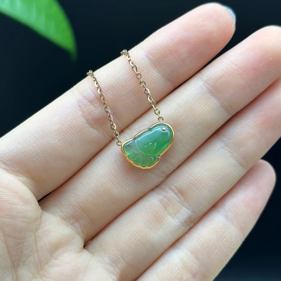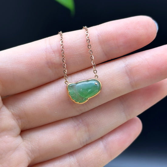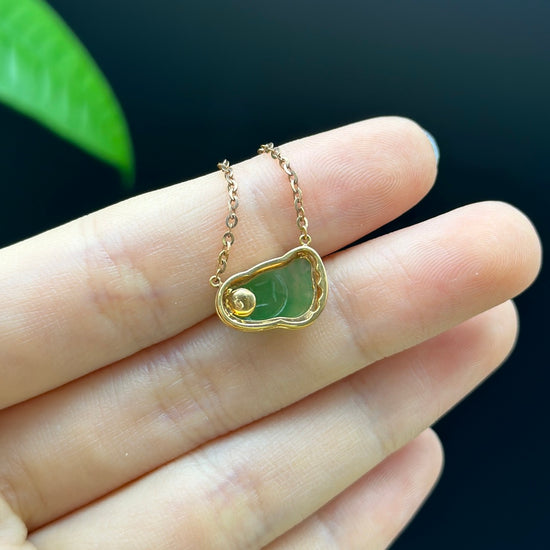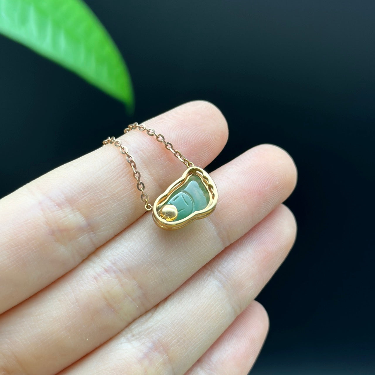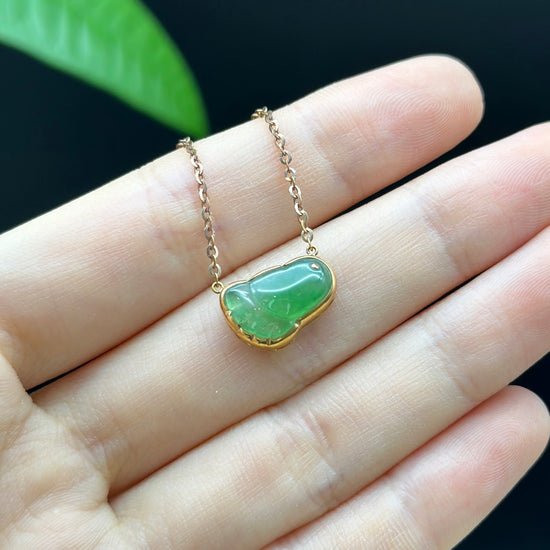 RealJade 18k Rose Gold Genuine Ice Green Jadeite Jade Pendant